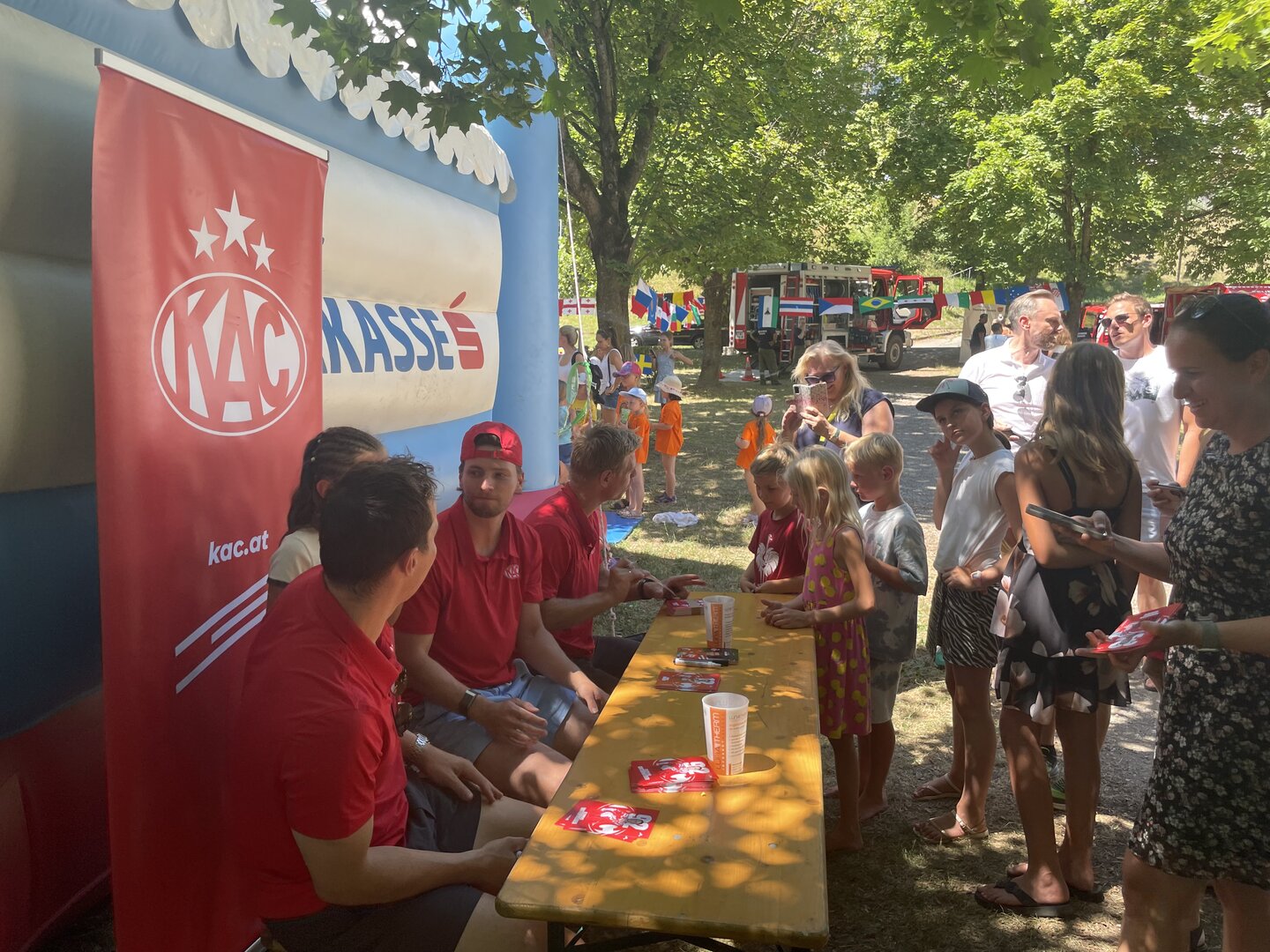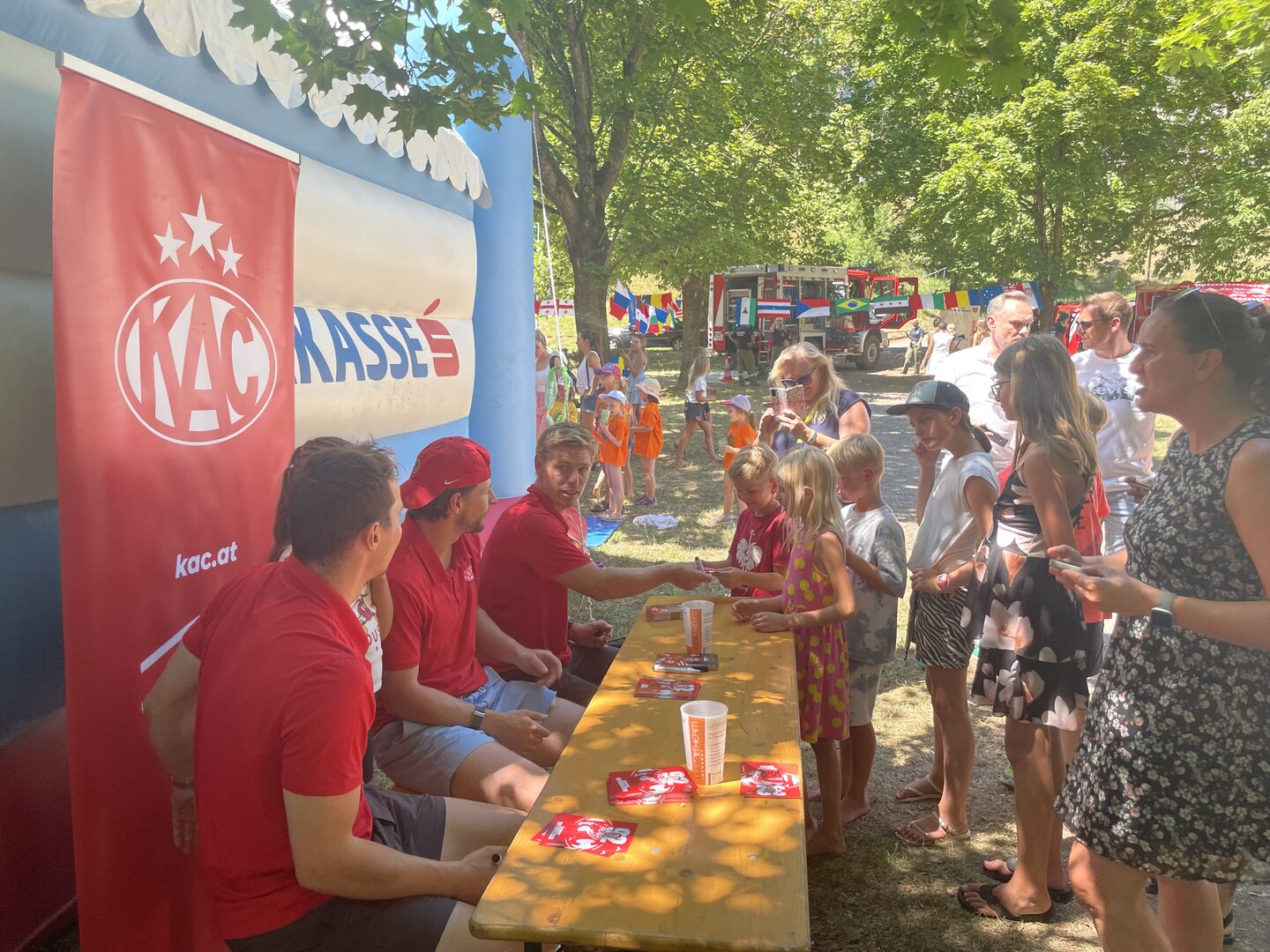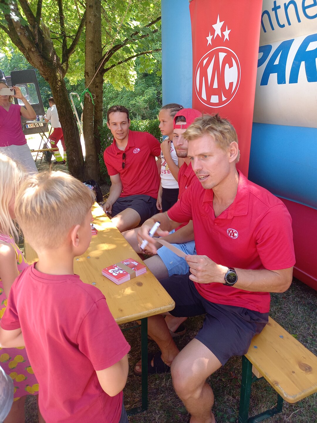 Za hrano in pijačo je bilo odlično poskrbljeno: postregli so s burgerji in pomfrijem, pa tudi z osvežilnimi pijačami in sadnimi koktajli. Trije igralci KAC so razveseljevali otroke z avtogrami, medtem ko so se četrte igralke uradno poslovili – čustven trenutek.