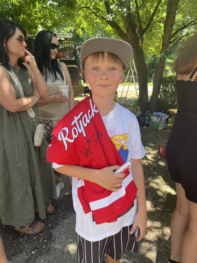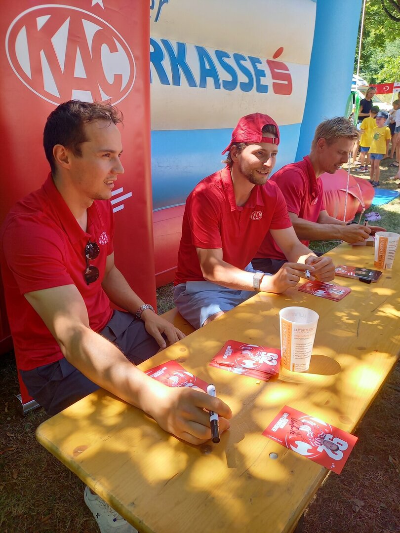 Für das leibliche Wohl war bestens gesorgt: Burger und Pommes wurden frisch serviert, dazu gab es kühle Getränke und fruchtige Süßigkeiten. Drei Spieler des KAC waren zu Gast und schrieben geduldig Autogramme, während die vierte Klasse offiziell verabschiedet wurde – ein bewegender Moment.