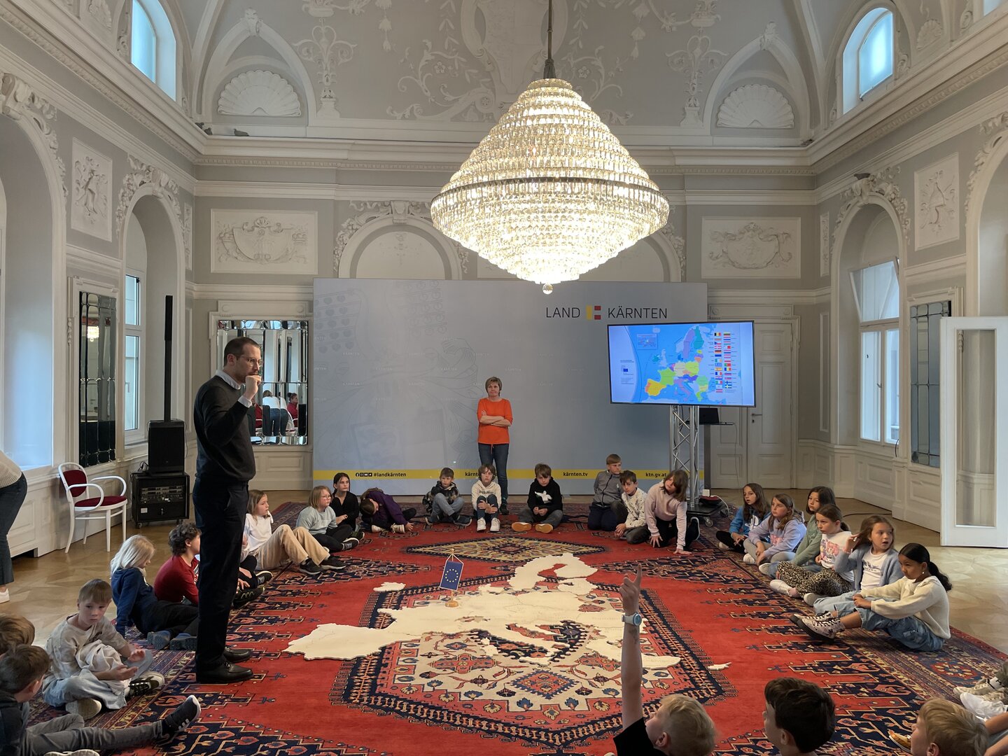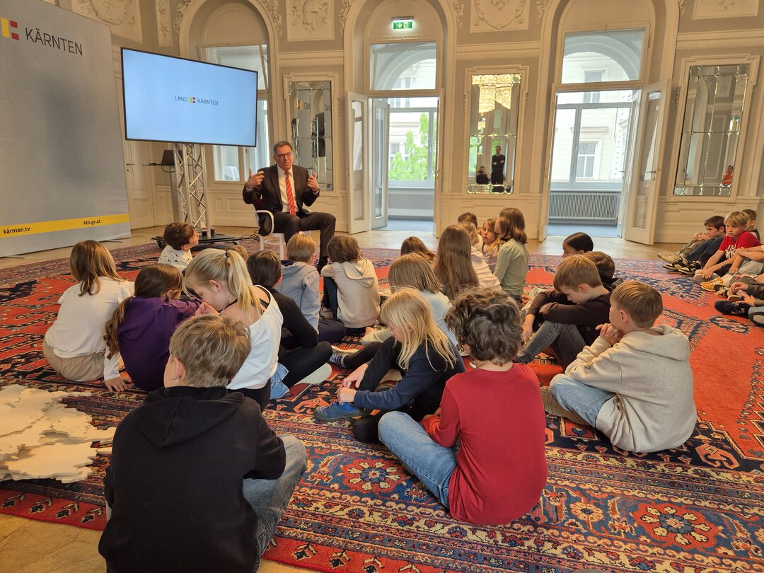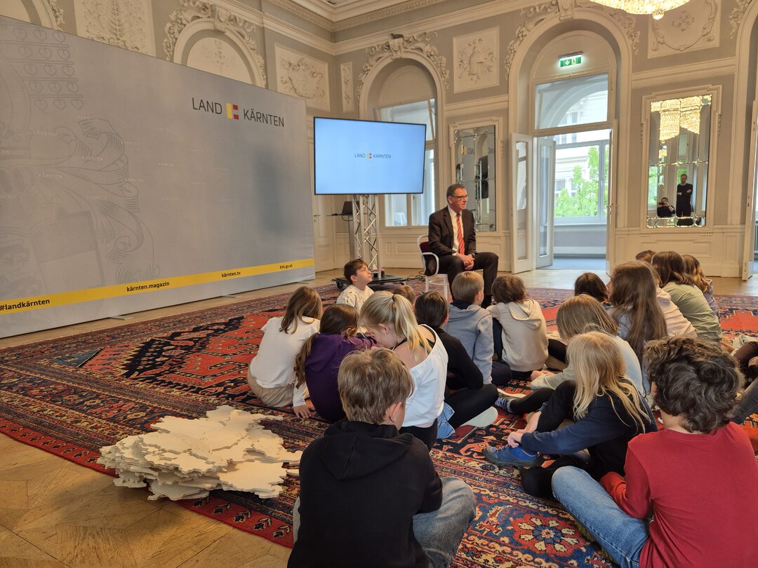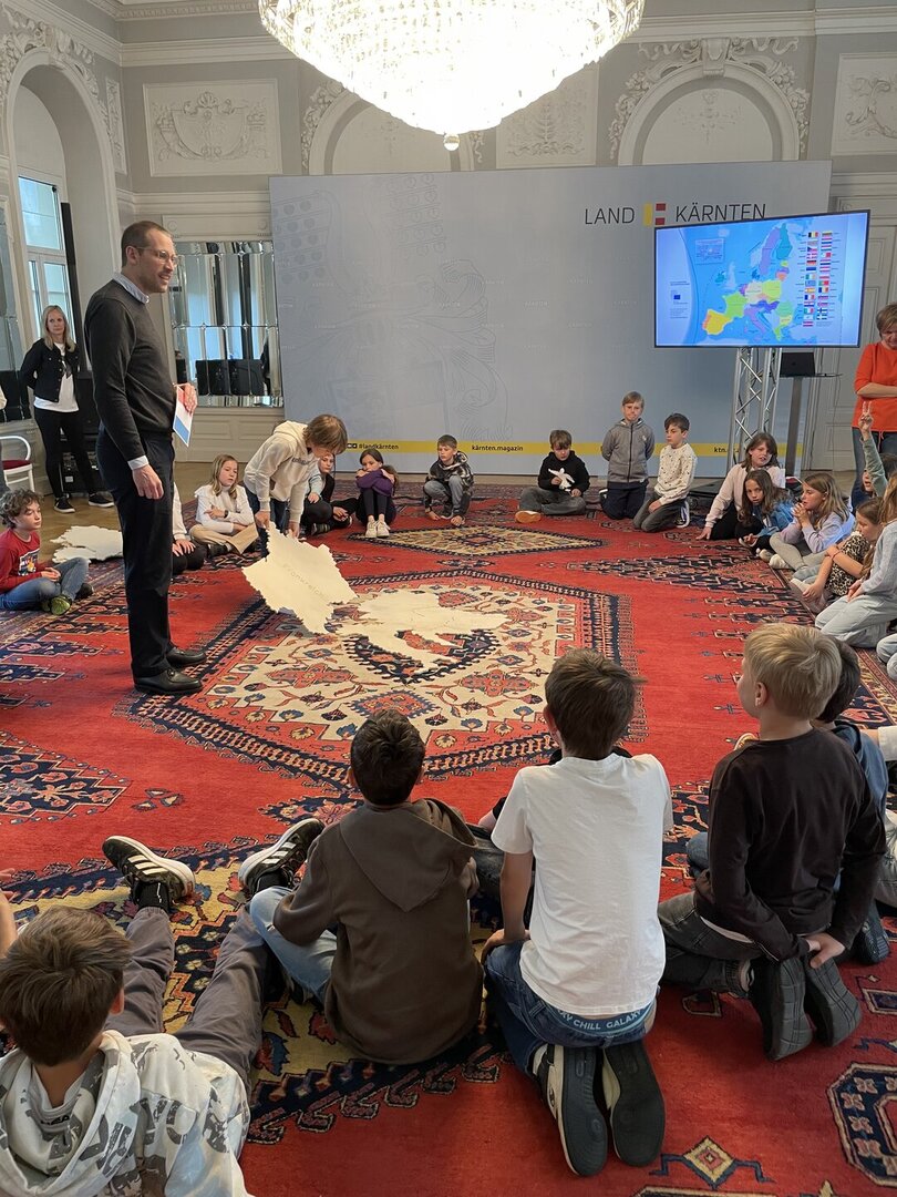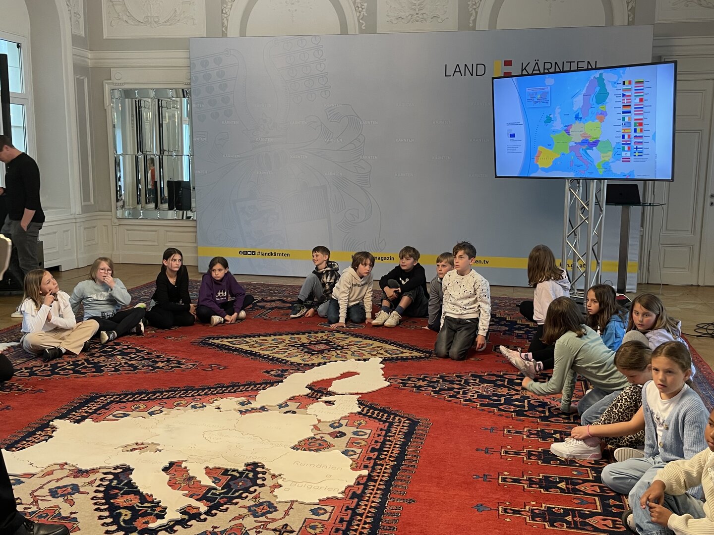 Im beeindruckenden Wappensaal erfuhren die Kinder mehr über die Geschichte des Landes und die Bedeutung der Wappen der einzelnen Kärntner Städte und Gemeinden. Besonders spannend war es, einmal dort zu sitzen, wo sonst Politikerinnen und Politiker tagen und wichtige Entscheidungen getroffen werden.