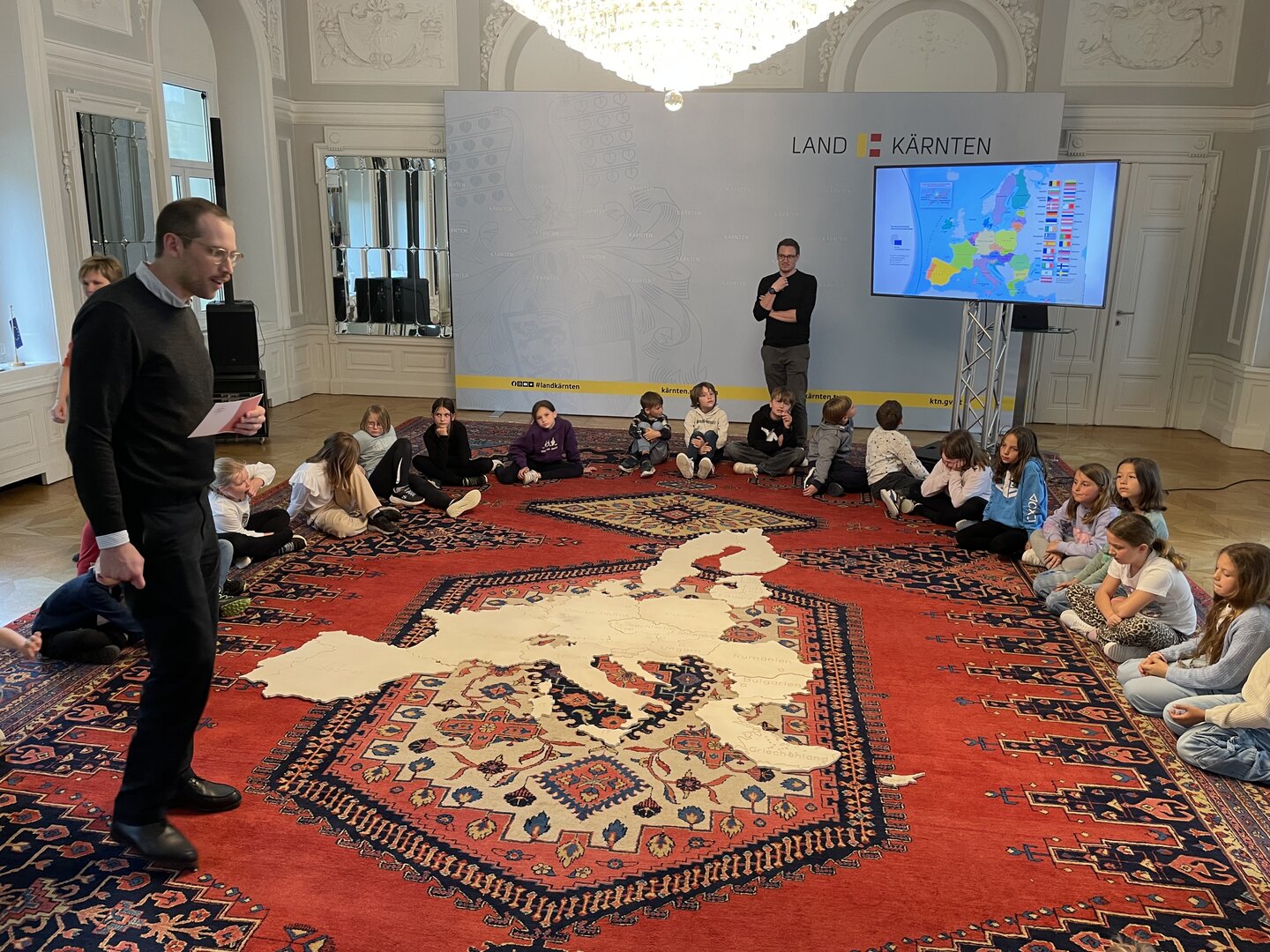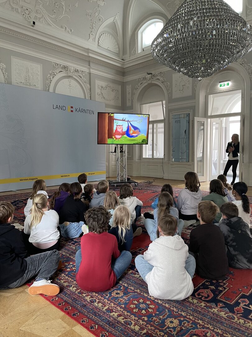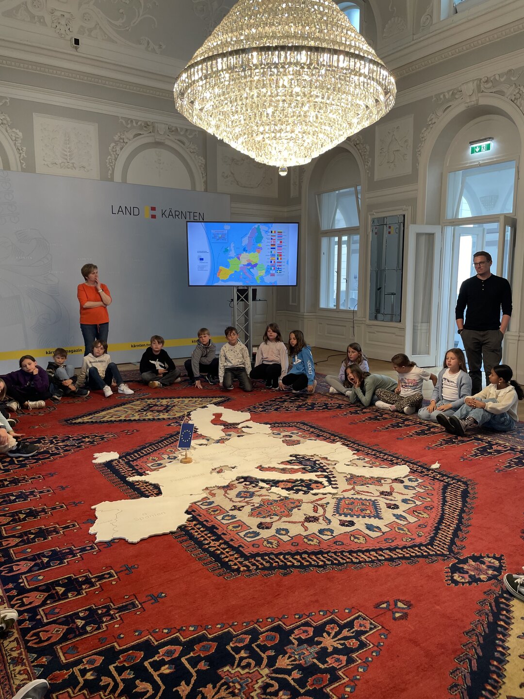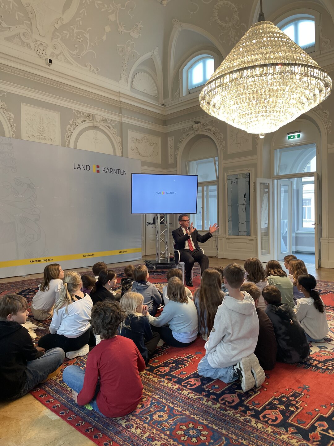 Im beeindruckenden Wappensaal erfuhren die Kinder mehr über die Geschichte des Landes und die Bedeutung der Wappen der einzelnen Kärntner Städte und Gemeinden. Besonders spannend war es, einmal dort zu sitzen, wo sonst Politikerinnen und Politiker tagen und wichtige Entscheidungen getroffen werden.