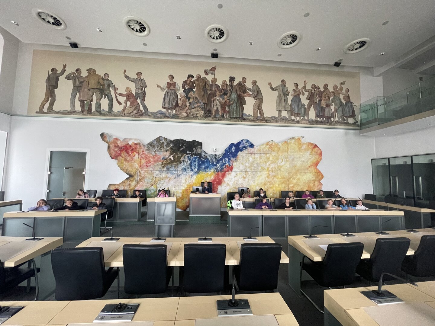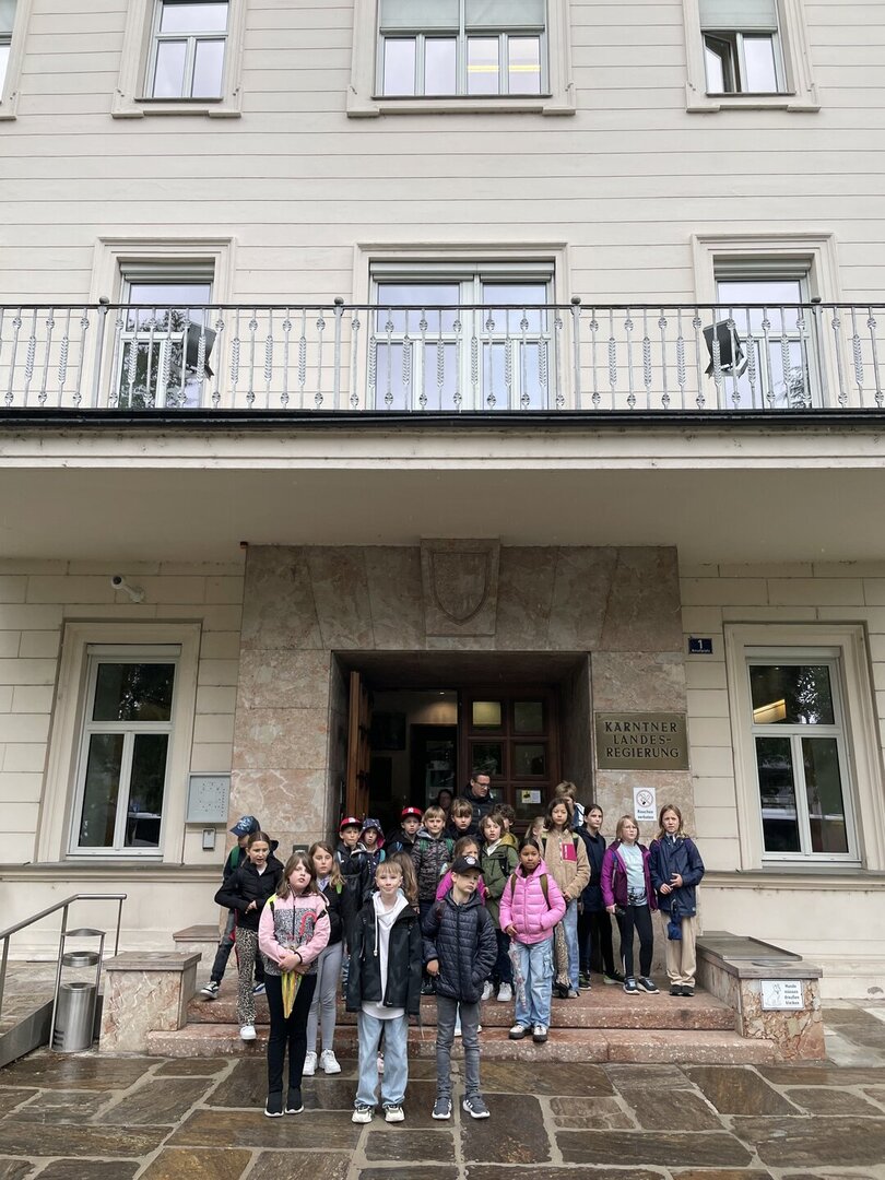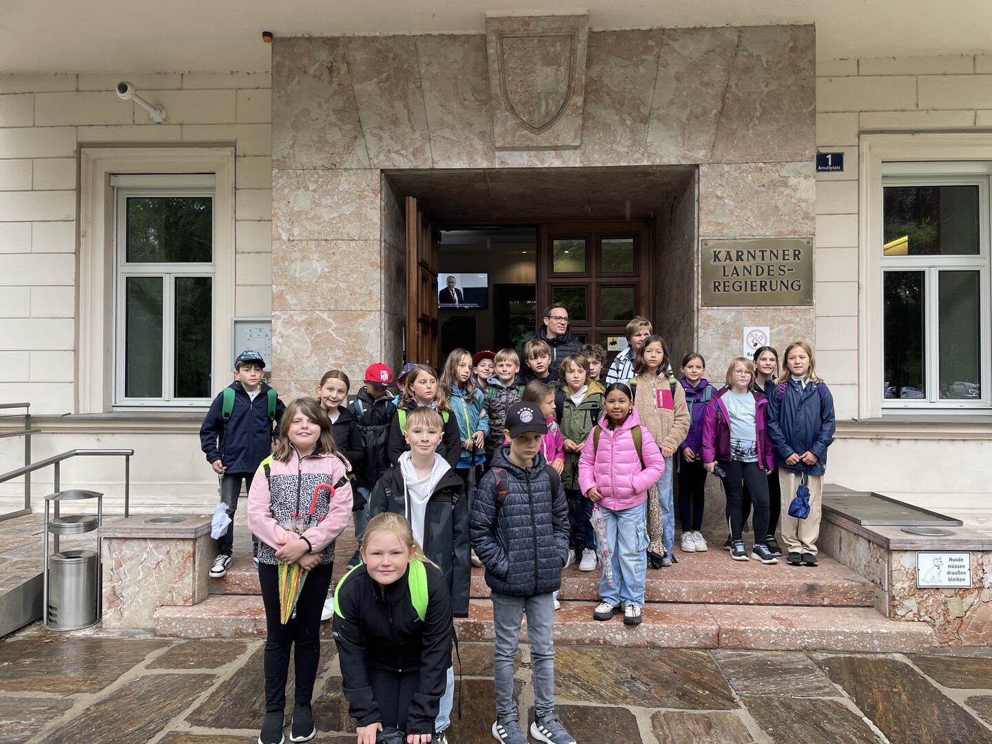 Am 23. Mai machten sich die 3. und 4. Klasse auf den Weg nach Klagenfurt, um die Kärntner Landesregierung und den historischen Wappensaal im Landhaus zu besuchen. Die Schülerinnen und Schüler bekamen dabei einen spannenden Einblick in die Aufgaben der Landesregierung und die politische Organisation Kärntens.