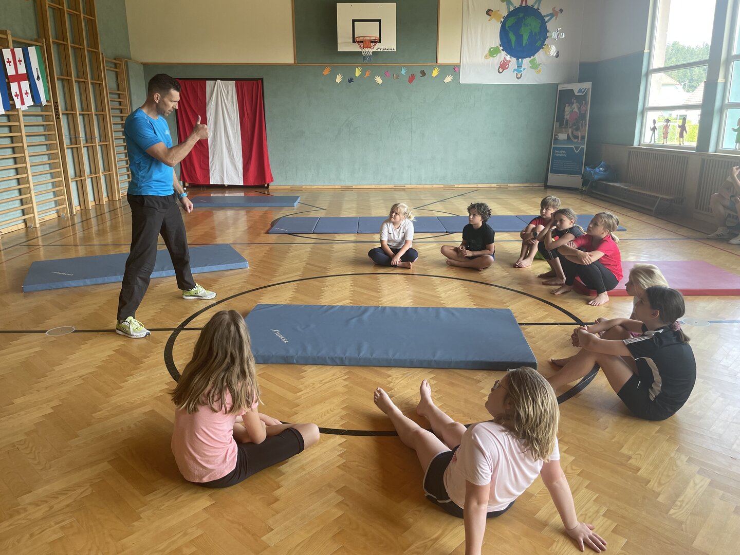 Beim AUVA-Falltraining am 12. Juni lernten die Kinder der 3. und 4. Schulstufe, wie man sich bei einem Sturz richtig verhält – mit viel Bewegung, Spaß und Sicherheit.