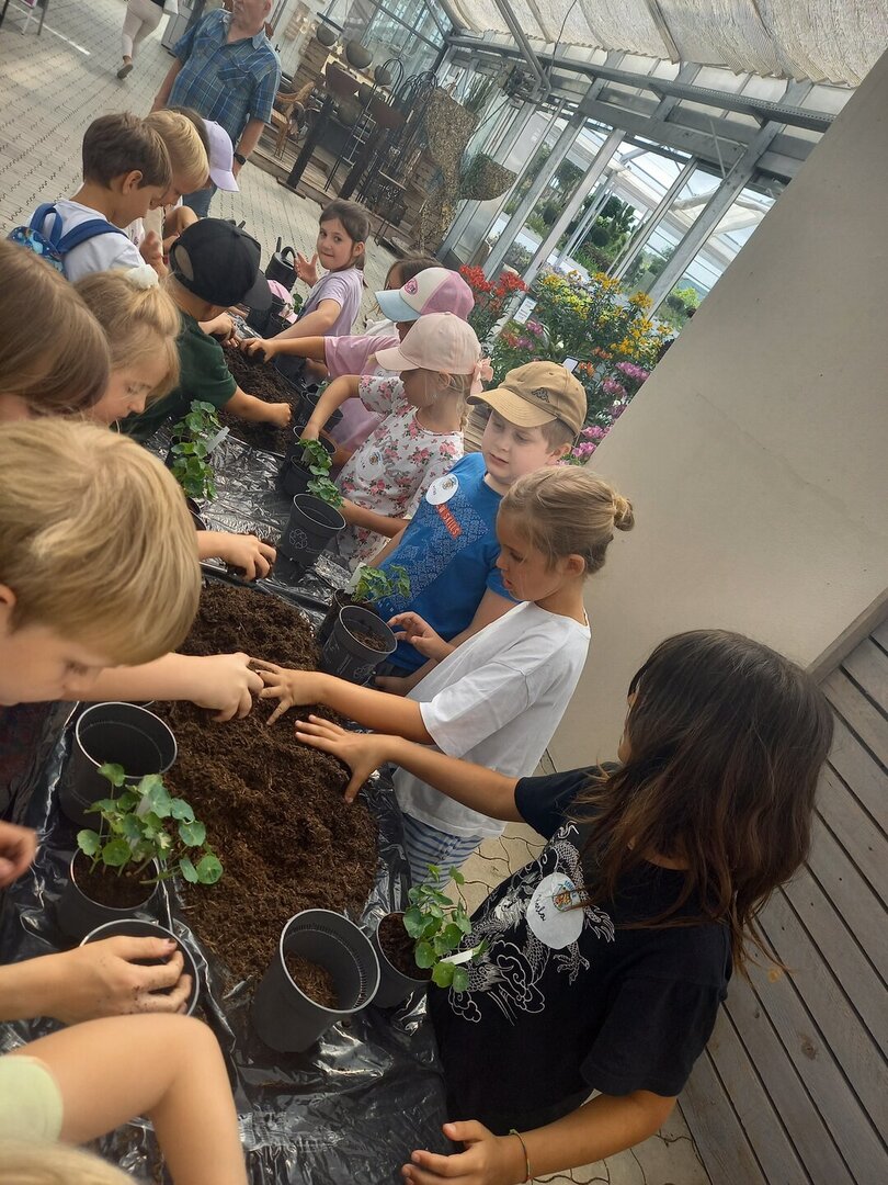 Mit großer Neugier erkundeten sie die Glashäuser, Beete und Pflanzbereiche, lernten, wie Blumen gezogen, gepflegt und gegossen werden – und durften sogar selbst kleine Pflanzen setzen. Dabei erfuhren sie auf kindgerechte Weise viel über den Jahreskreislauf in der Natur, das Wachstum von Pflanzen und die Arbeit in einer Gärtnerei.