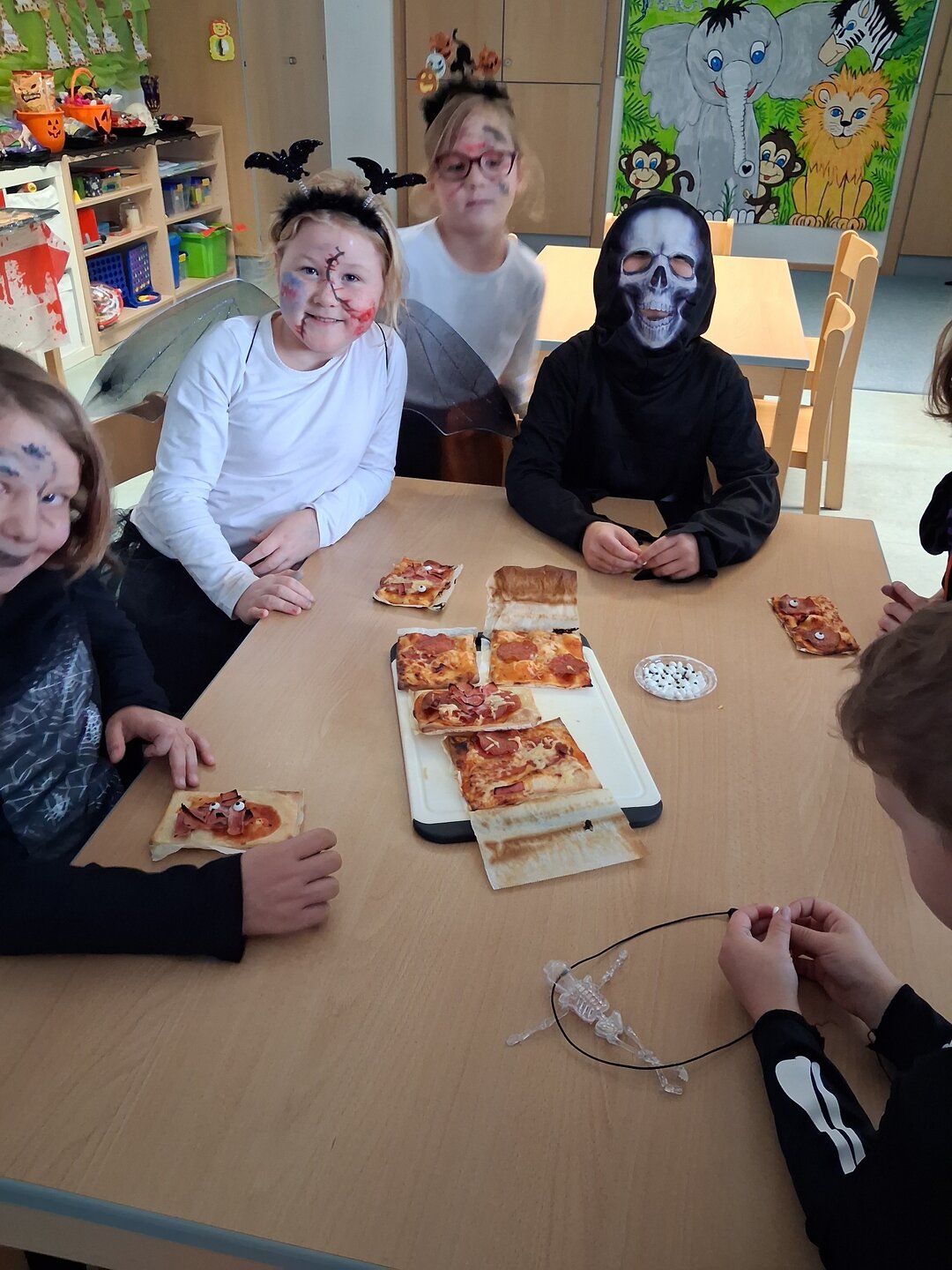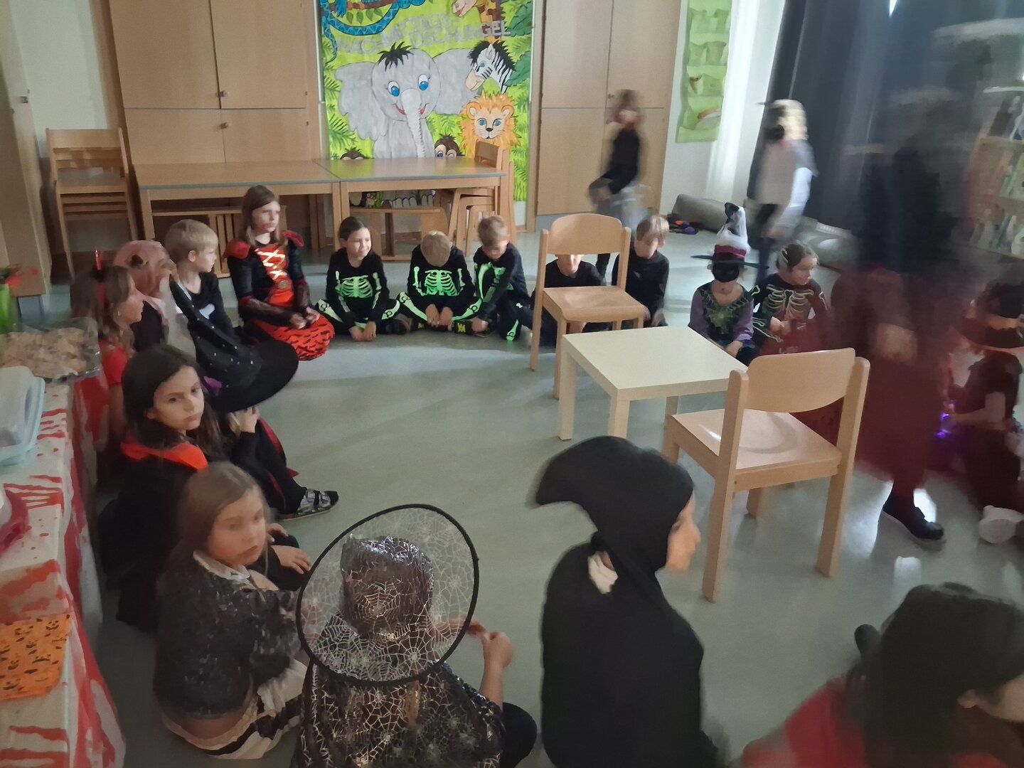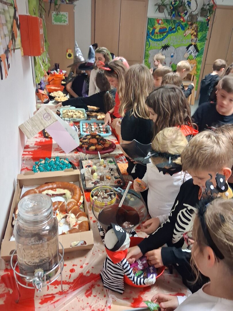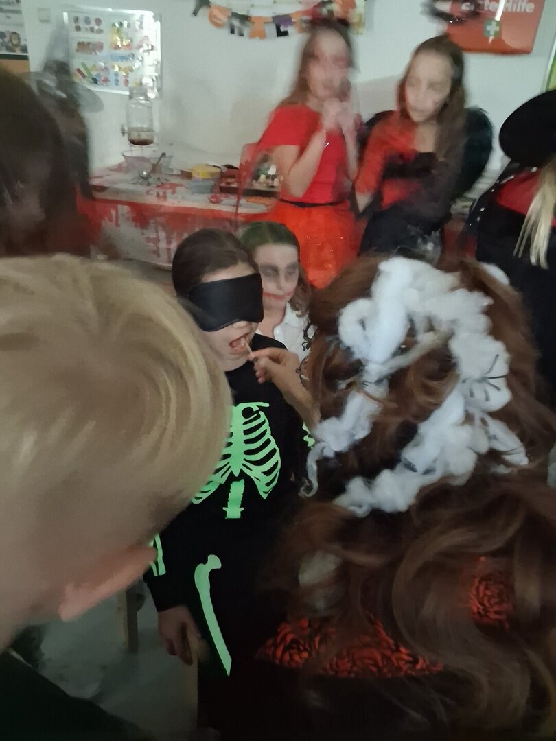 Die Räume waren passend dekoriert und sorgten für die richtige Gruselstimmung. Bei lustigen Spielen, Musik und kleinen Wettbewerben wurde gelacht, getanzt und gefeiert. Natürlich durften auch süße Leckereien nicht fehlen.