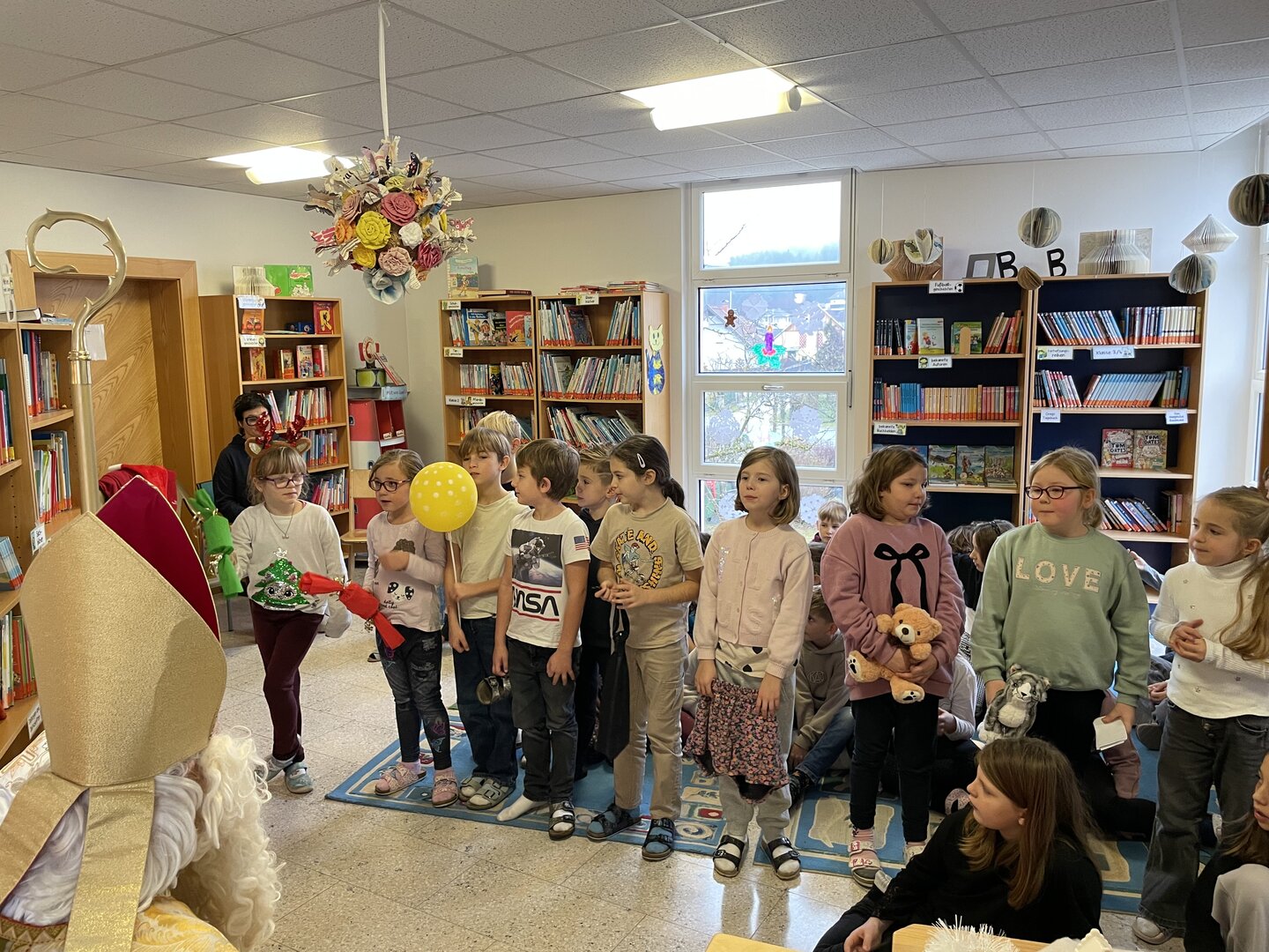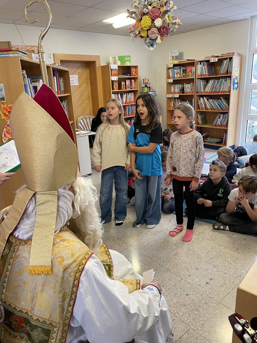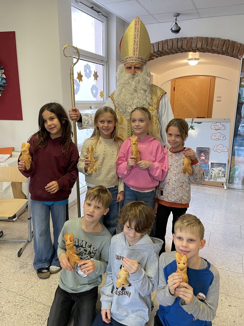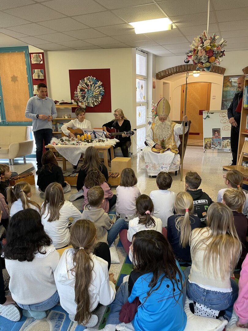 Am 5. Dezember besuchte der Nikolo unsere Schule und wurde von den Kindern mit Liedern und Gedichten in der Bibliothek empfangen. Für viele ein ganz besonderer Moment – mit leuchtenden Augen, schönen Beiträgen und gemeinsamen Erinnerungsfotos.