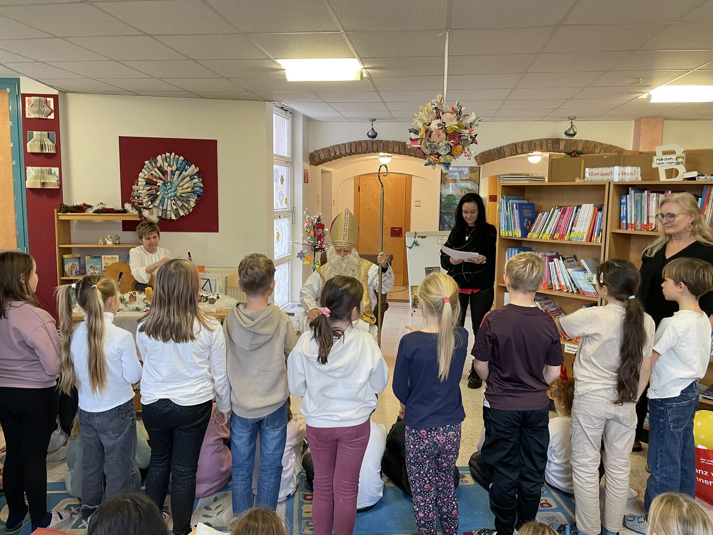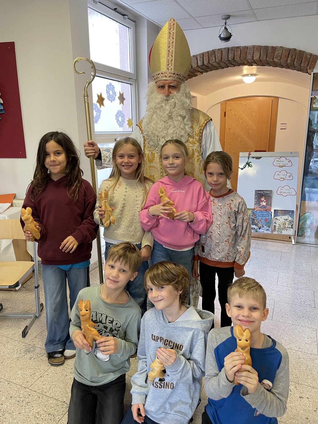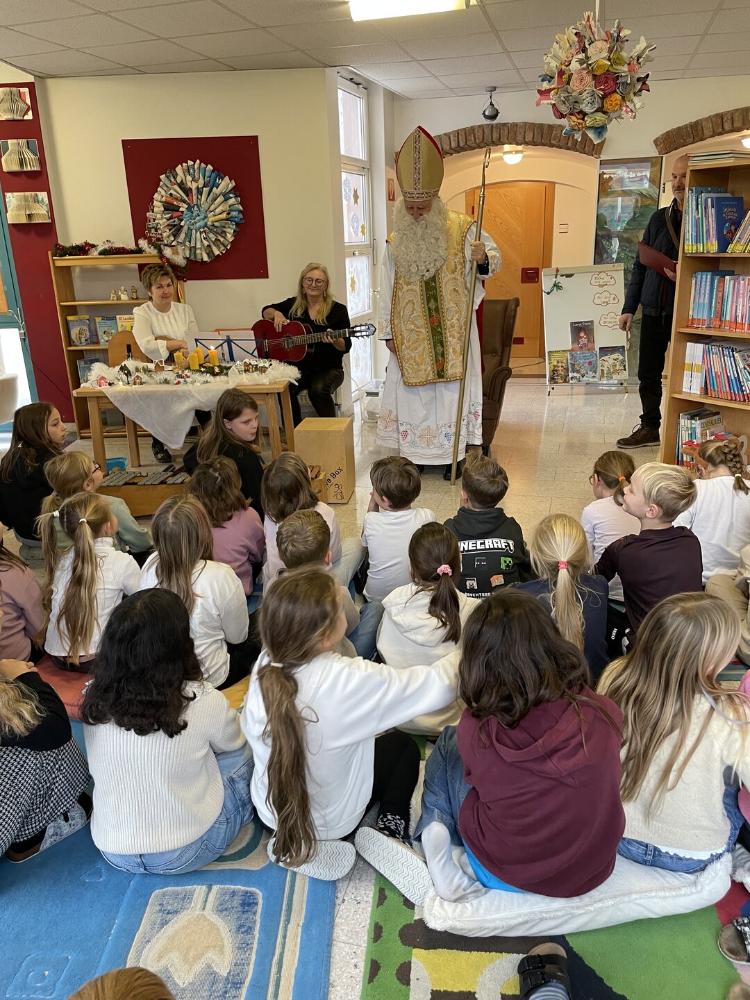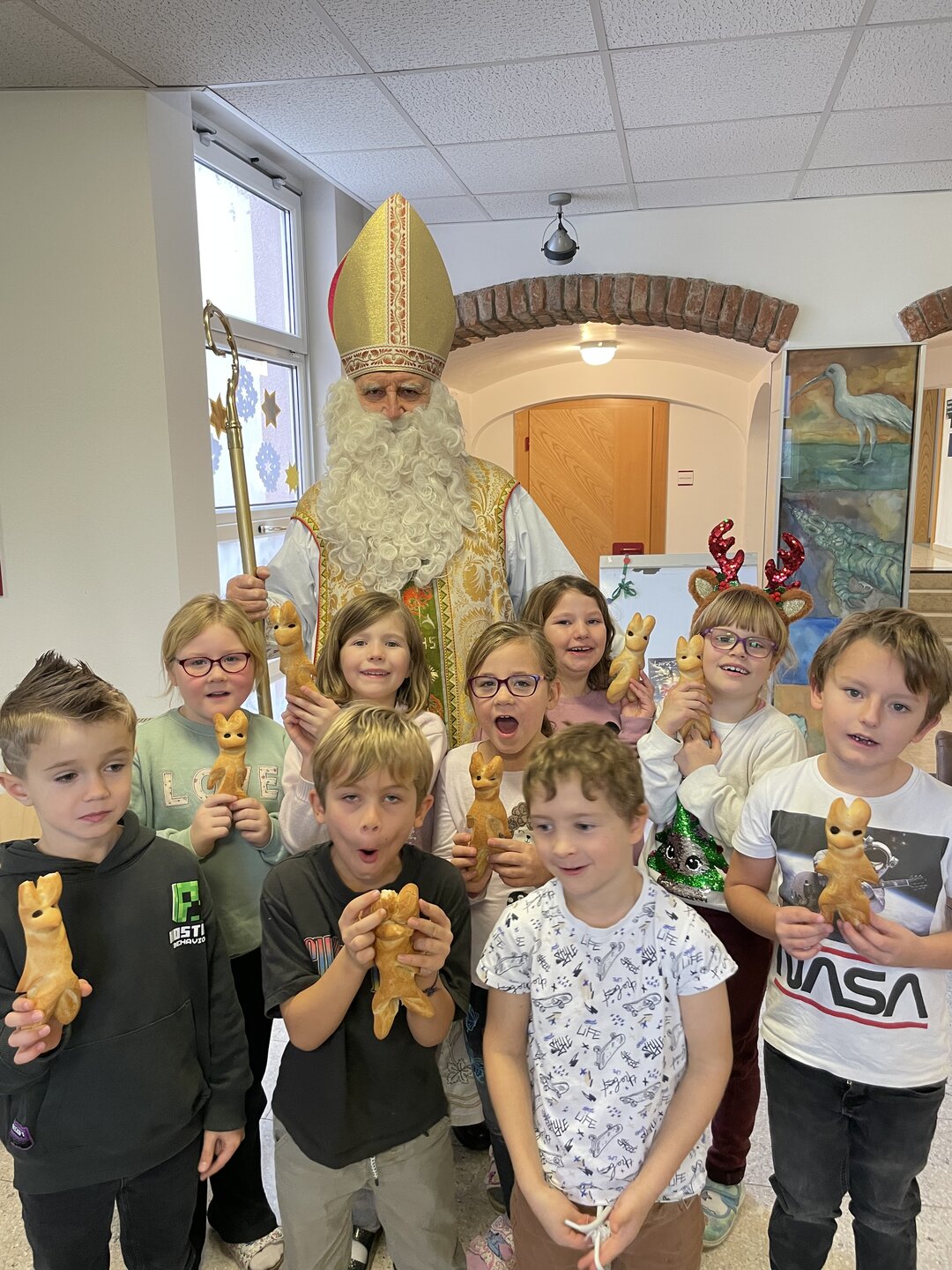 Am 5. Dezember besuchte der Nikolo unsere Schule und wurde von den Kindern mit Liedern und Gedichten in der Bibliothek empfangen. Für viele ein ganz besonderer Moment – mit leuchtenden Augen, schönen Beiträgen und gemeinsamen Erinnerungsfotos.