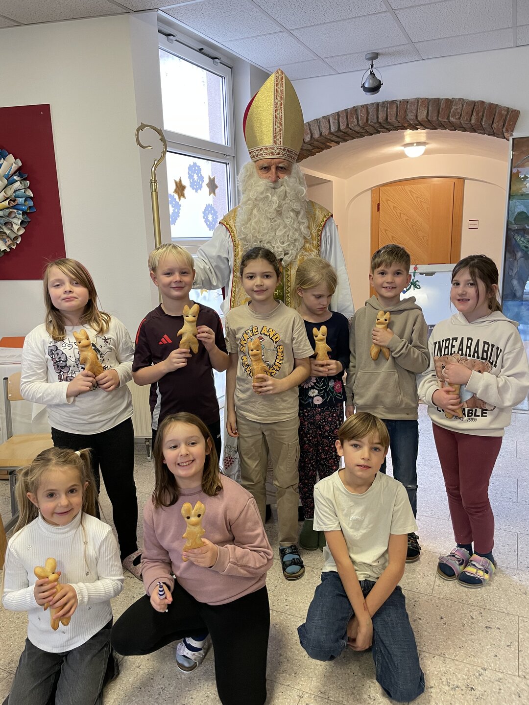 Beim Nikolo-Besuch am 5. Dezember gab es nicht nur Lieder, Gedichte und Fotos – sondern auch köstliche Semmelkrampusse, großzügig gesponsert von Herrn Gril Paul. Herzlichen Dank!