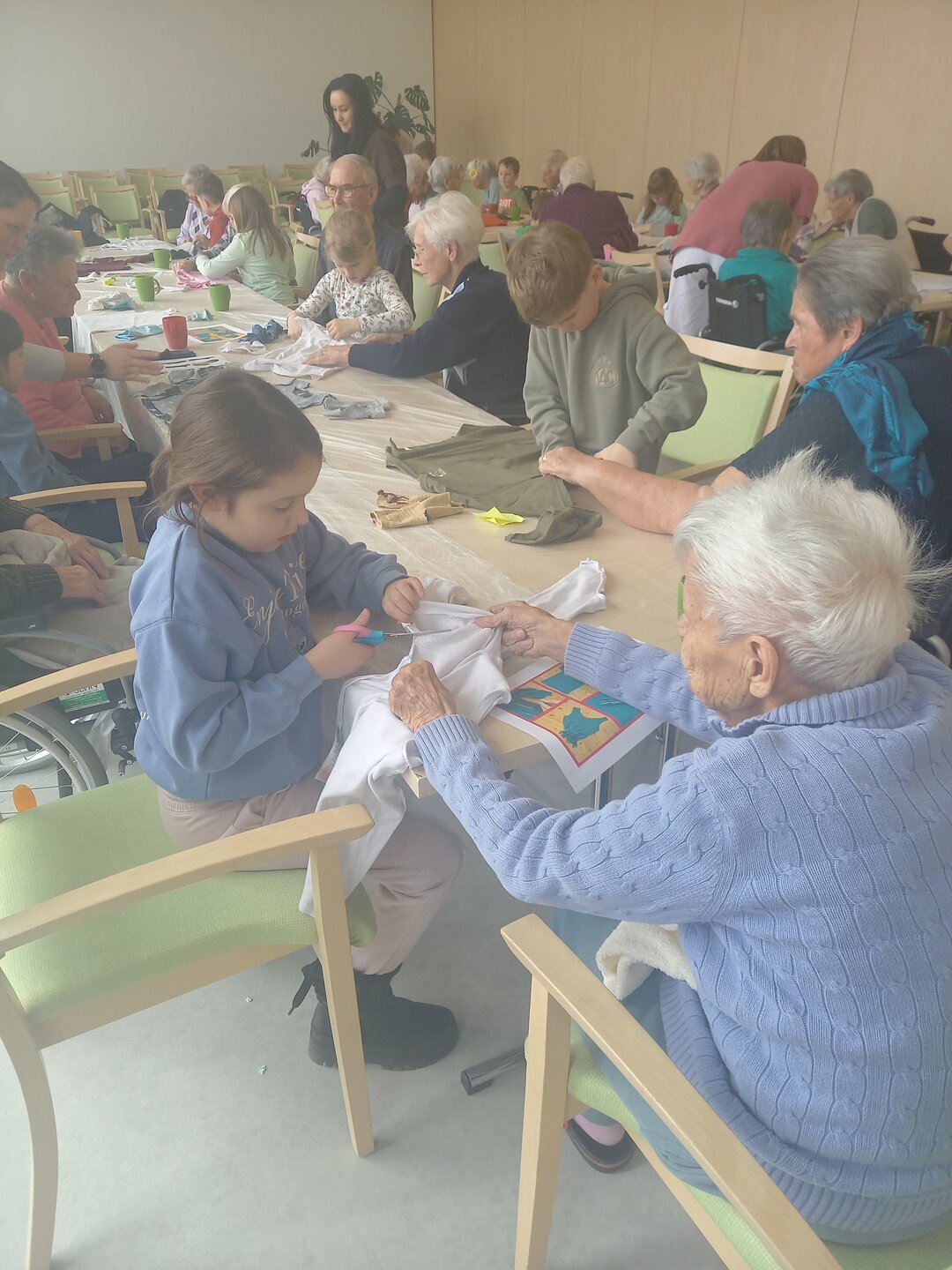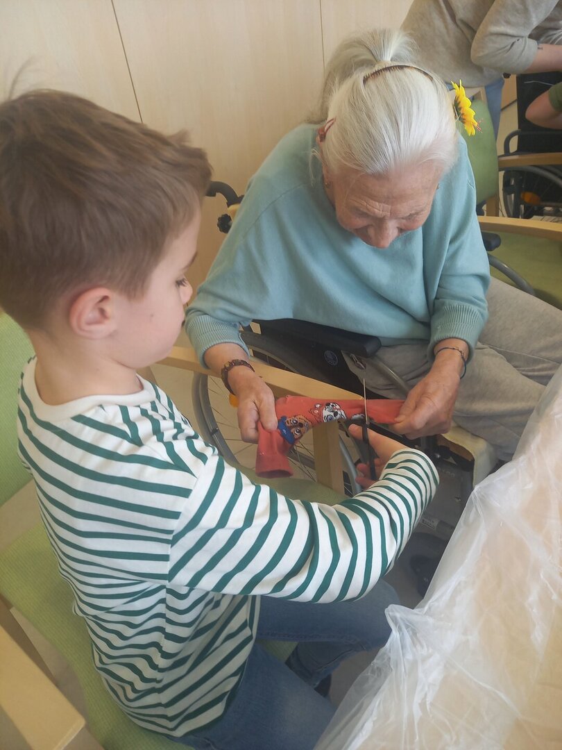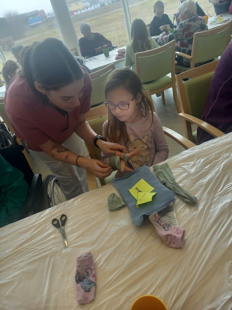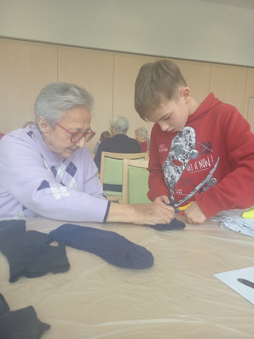 Gemeinsam mit den Bewohnerinnen und Bewohnern arbeiteten die Kinder zum Thema Upcycling. Aus scheinbar alten oder nicht mehr benötigten Materialien entstanden neue, kreative Werkstücke. Dabei wurde gebastelt, gelacht, erzählt und voneinander gelernt.