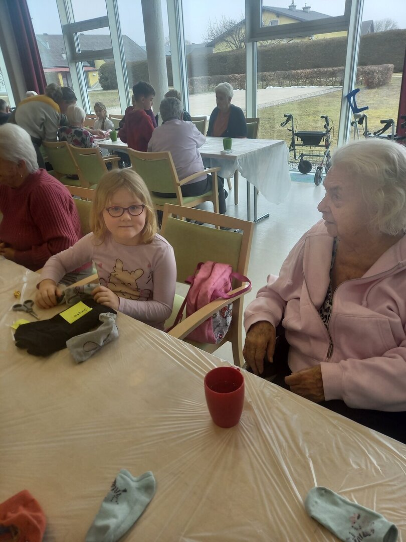 Die 1. und 2. Schulstufe besuchten das Seniorenzentrum in Kühnsdorf. Gemeinsam mit den Bewohnerinnen und Bewohnern gestalteten sie ein kreatives Projekt zum Thema Upcycling.
