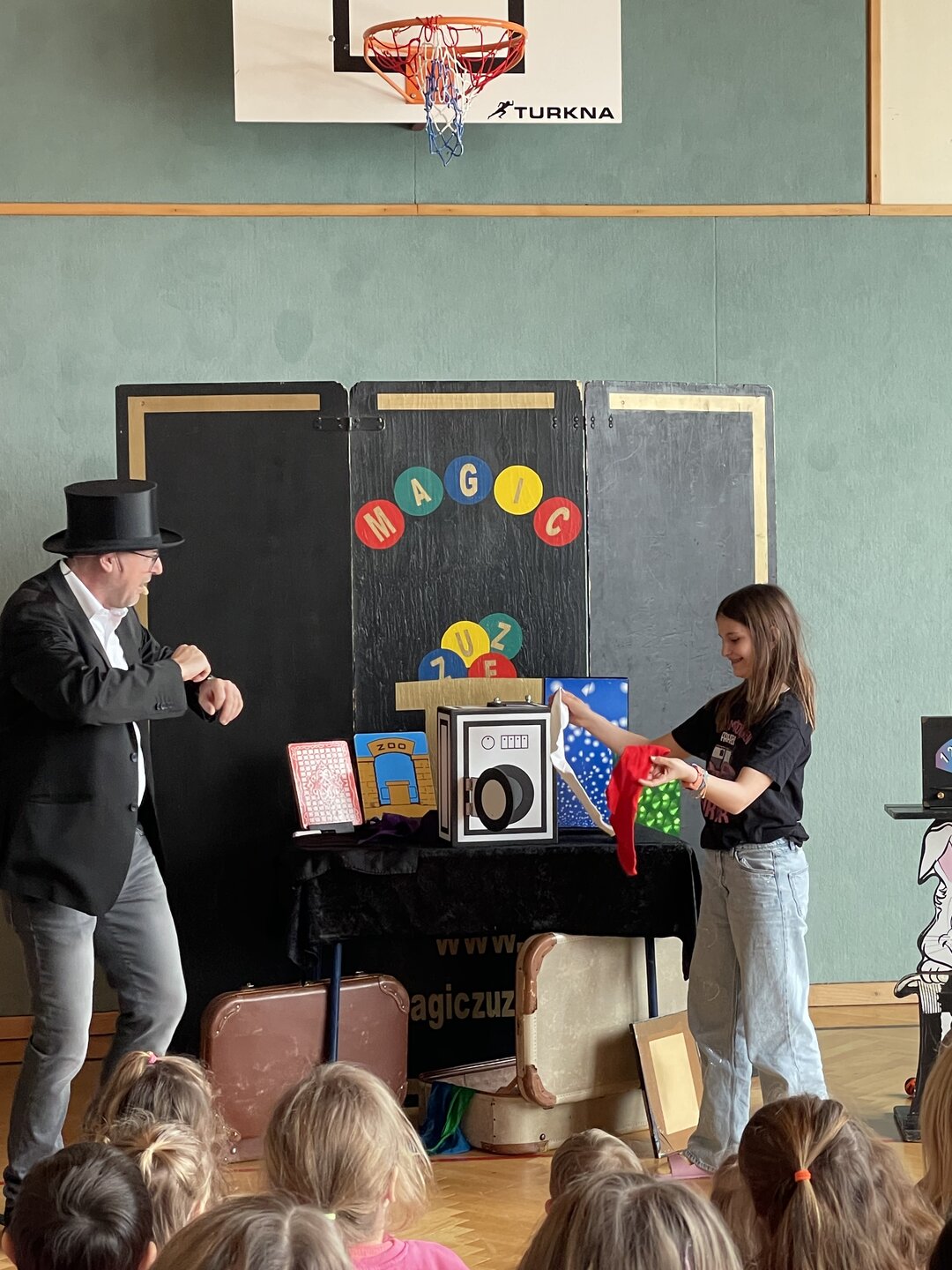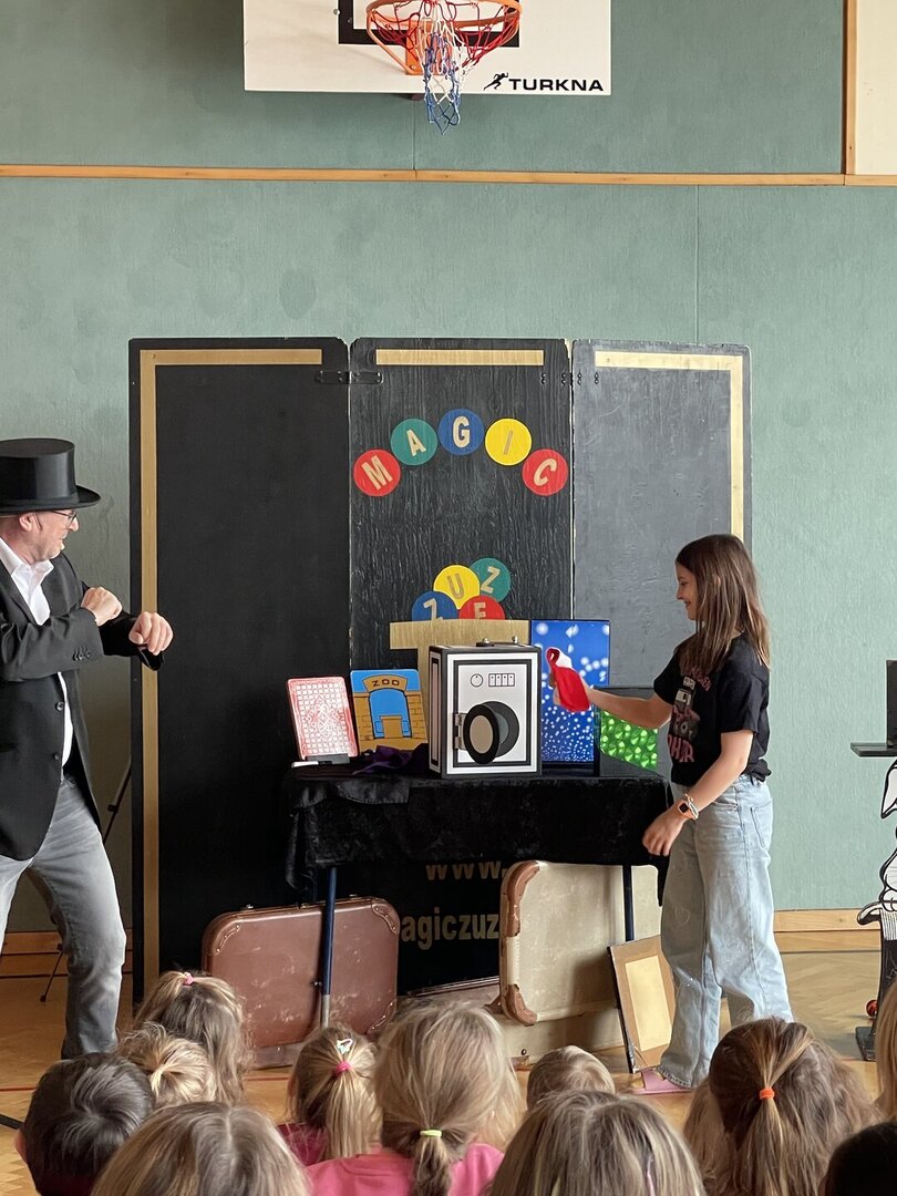 Am 18. Februar gab es in unserem Turnsaal etwas ganz Besonderes zu sehen: Magic Zuze war zu Besuch und brachte eine bunte Mischung aus Zauberei, Humor und Mitmachmomenten mit – ganz im Zeichen des Faschings!