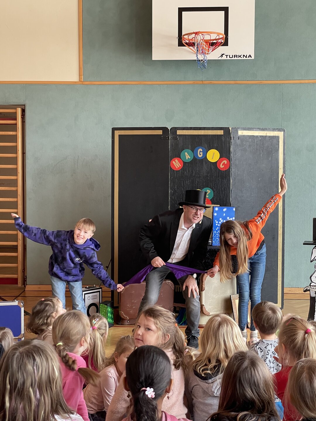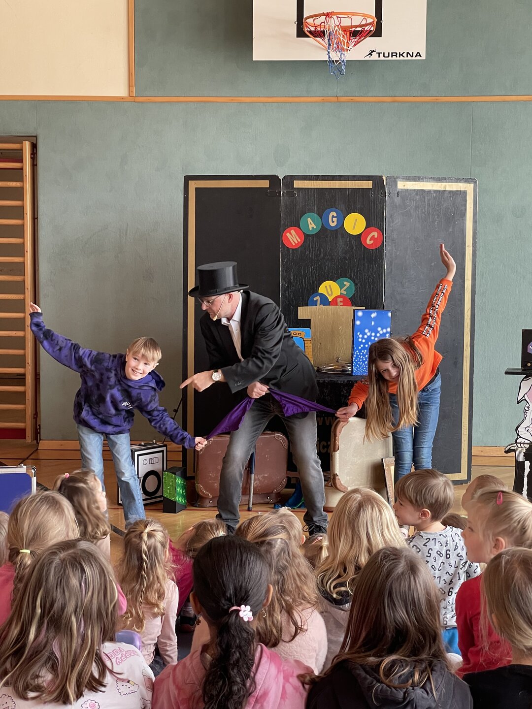 Am 18. Februar verwandelte Magic Zuze unseren Turnsaal in eine Bühne voller Magie und Lachen – eine mitreißende Faschingsvorstellung für alle Kinder!