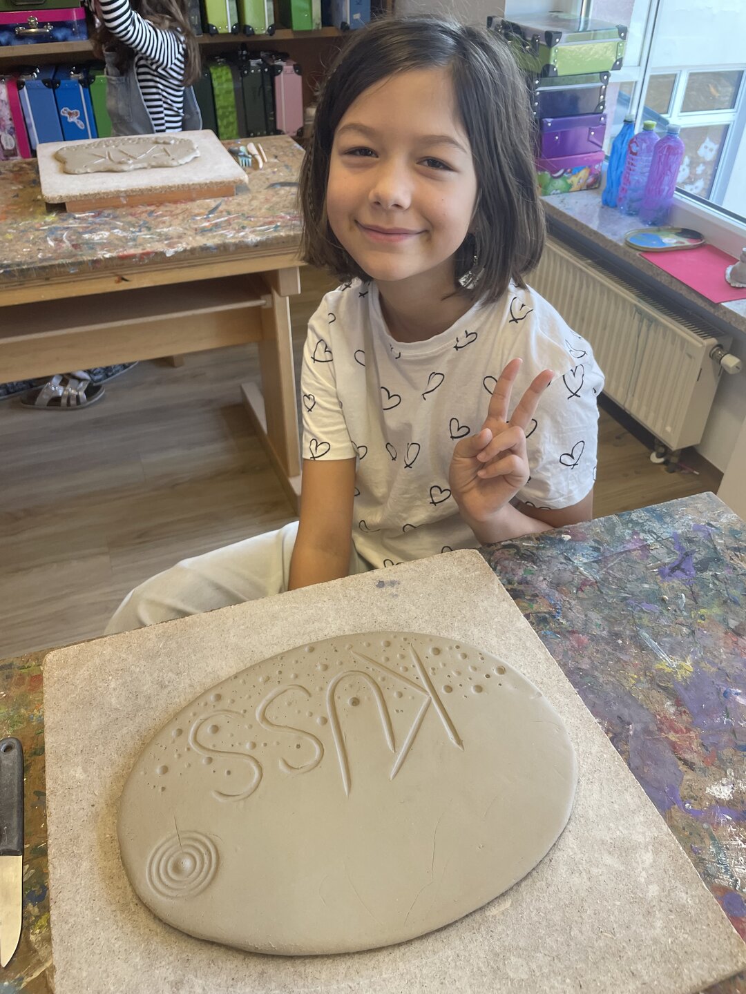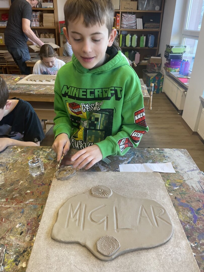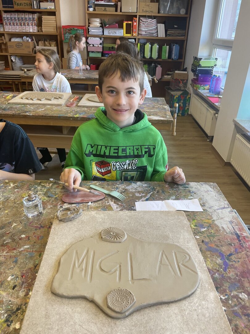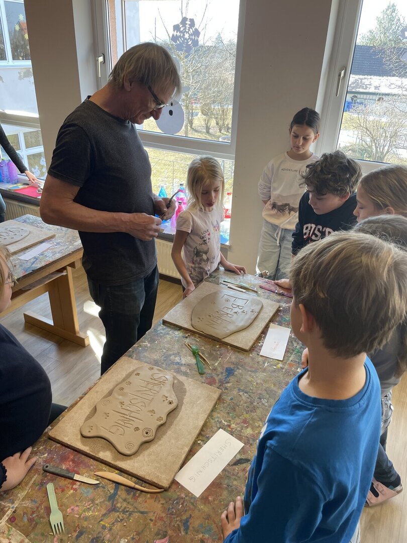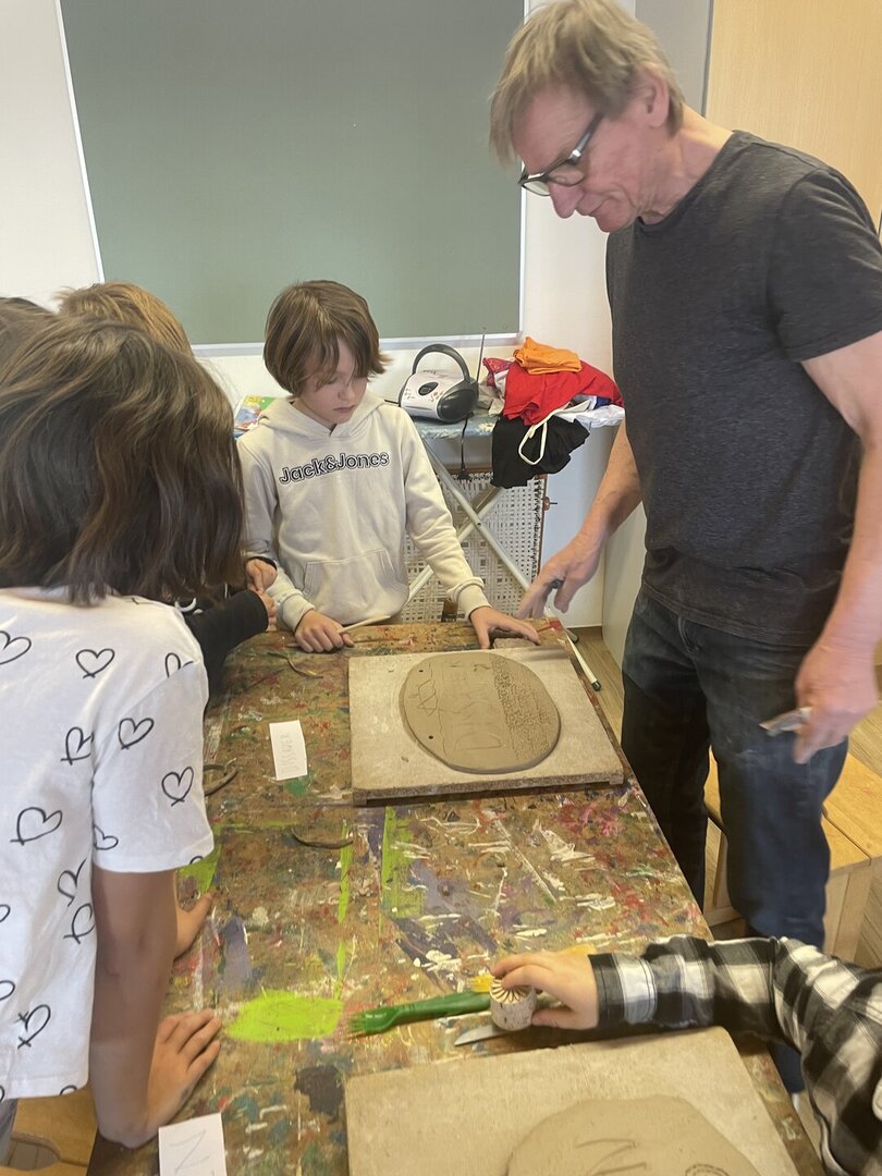 Jedes Werk war einzigartig und spiegelte die Freude am Gestalten wider. Der Künstler begleitete die Kinder fachkundig und herzlich durch den Prozess – von der Idee bis zum fertigen Werkstück.