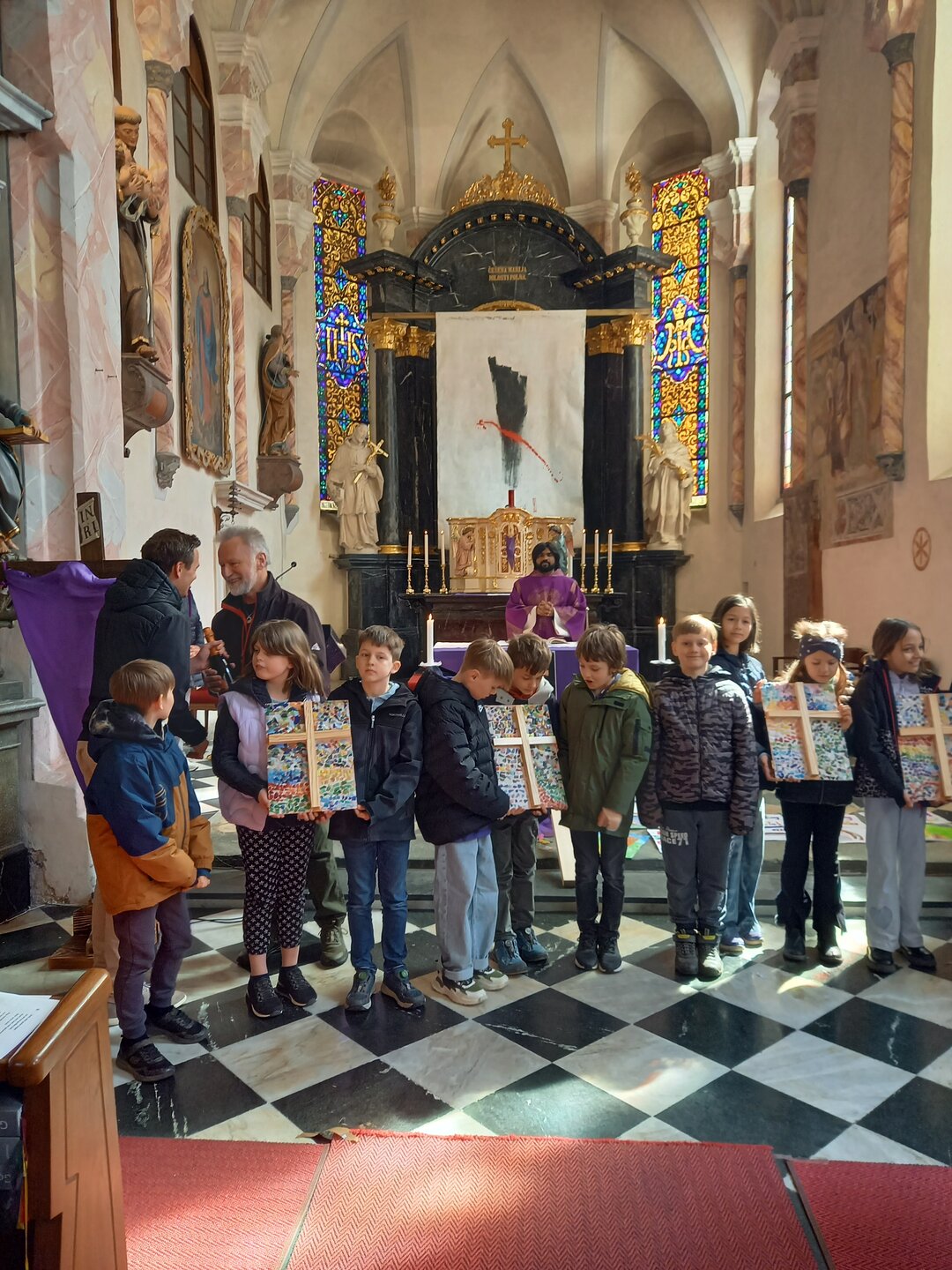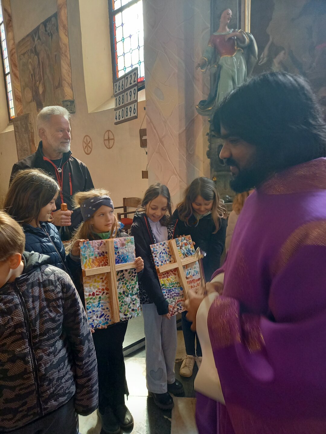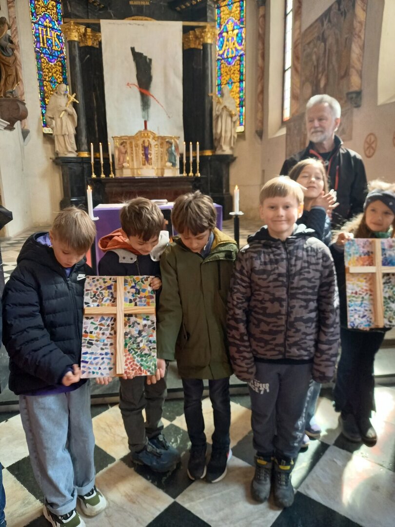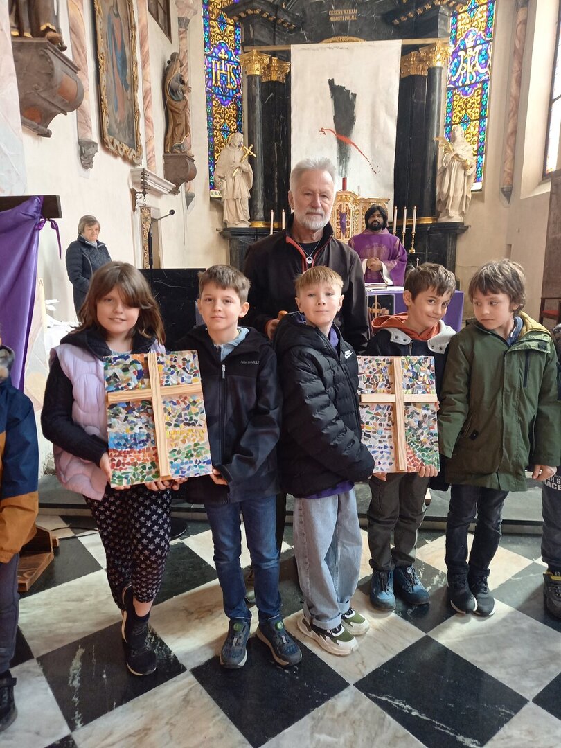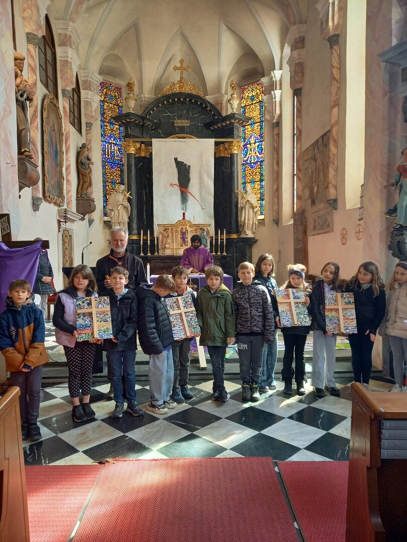 Die vier gesegneten Kreuze finden nun an verschiedenen Orten der Schule ihren Platz und erinnern uns täglich an die Werte, die uns im Miteinander tragen. Die Verbindung von Kunst, Spiritualität und Gemeinschaft machte diese Feier zu einem bedeutungsvollen Ereignis.