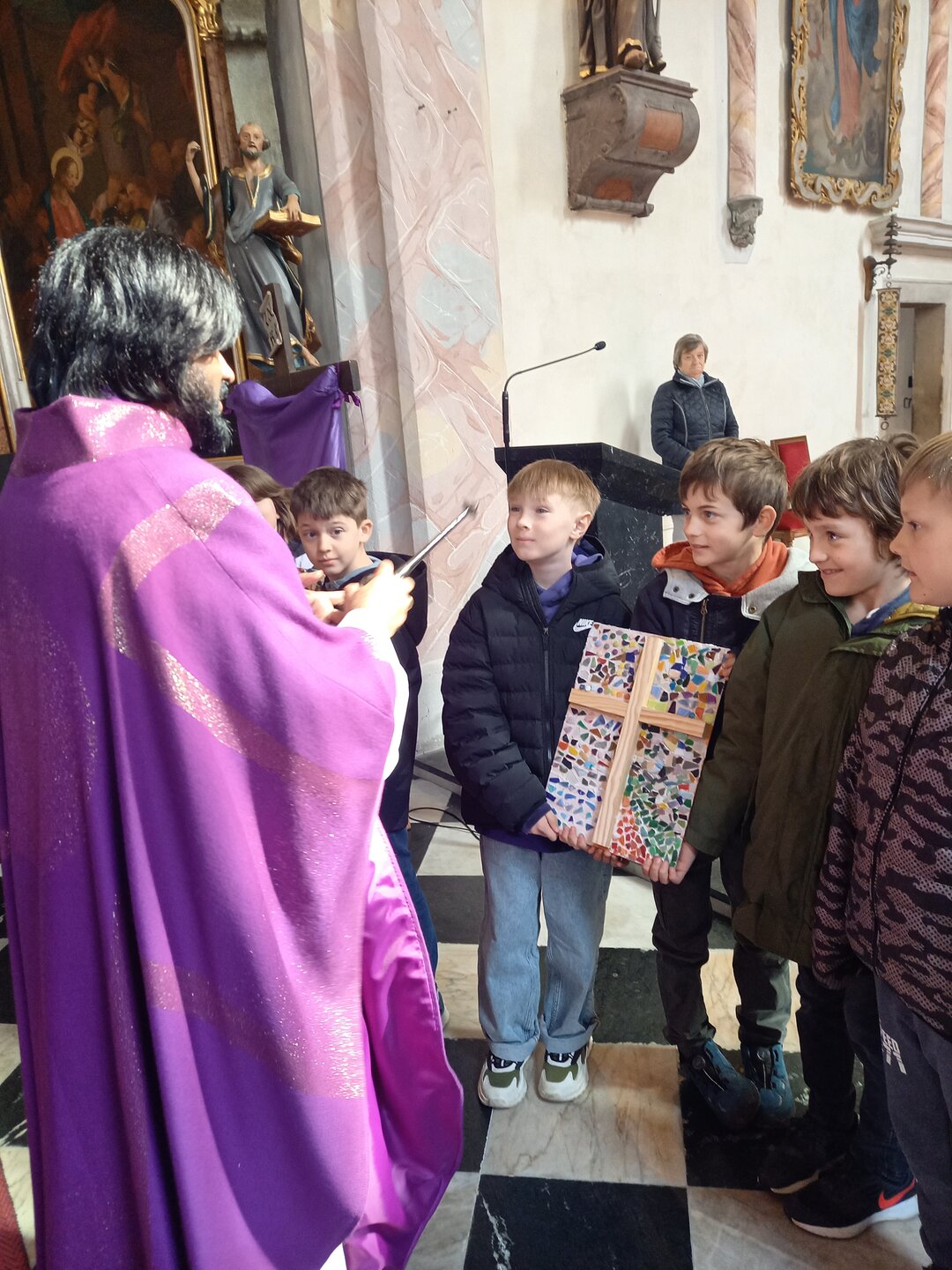 Am 10. April fand an unserer Schule eine besondere Ostermesse statt. In einem feierlichen Rahmen zelebrierte unser Pfarrer den Gottesdienst, begleitet von Liedern, Gebeten und stillen Momenten der Besinnung.