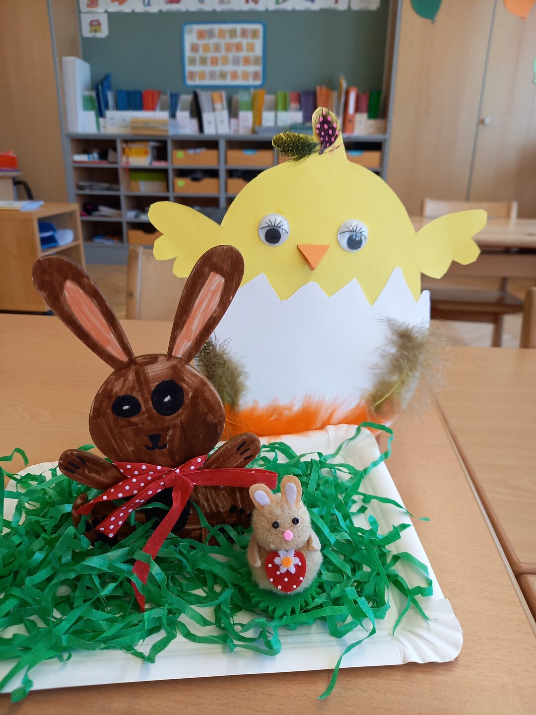 Am letzten Schultag vor den Osterferien wartete eine besondere Überraschung auf unsere Schülerinnen und Schüler: Der Osterhase hatte in und um die Schule kleine Osternester versteckt, gefüllt mit liebevollen Kleinigkeiten.