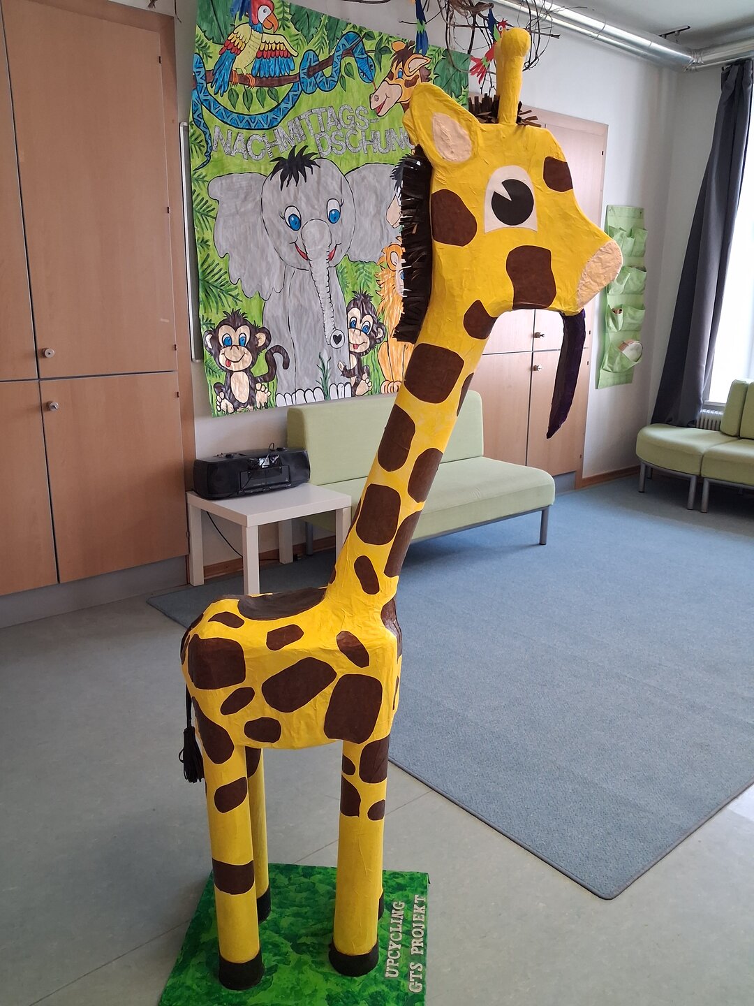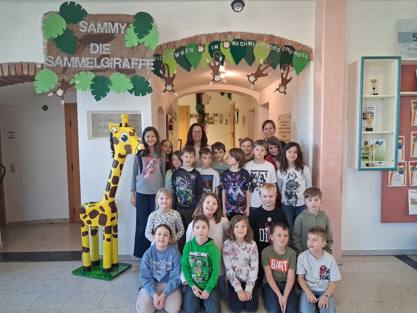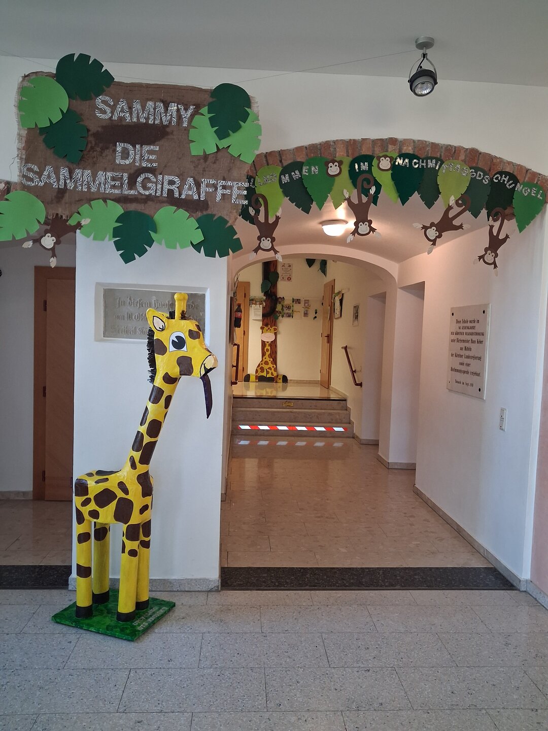 In der GTS hat ein ganz besonderes Projekt Einzug gehalten: Sammy, die Sammelgiraffe steht gut sichtbar vor dem Eingang und lädt alle Kinder ein, aktiv zum Umweltschutz beizutragen.
