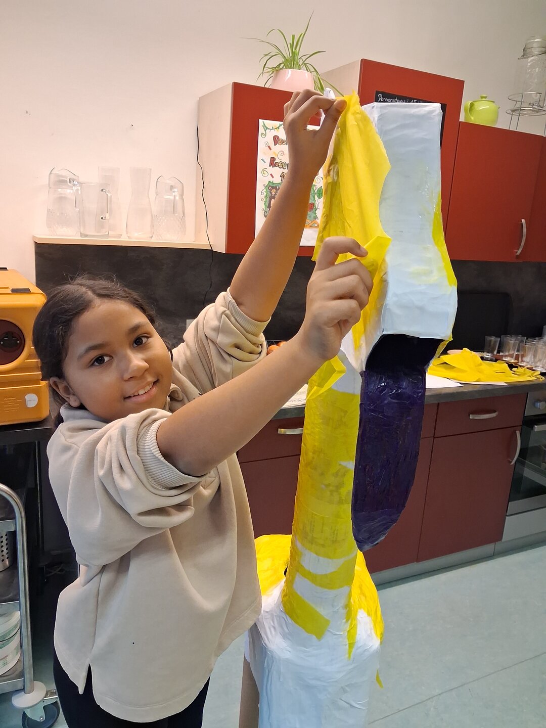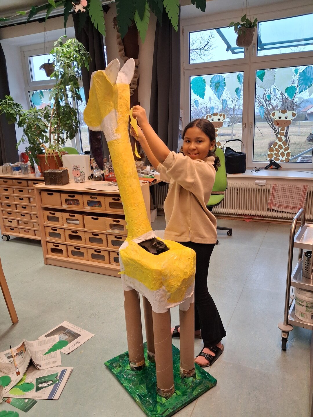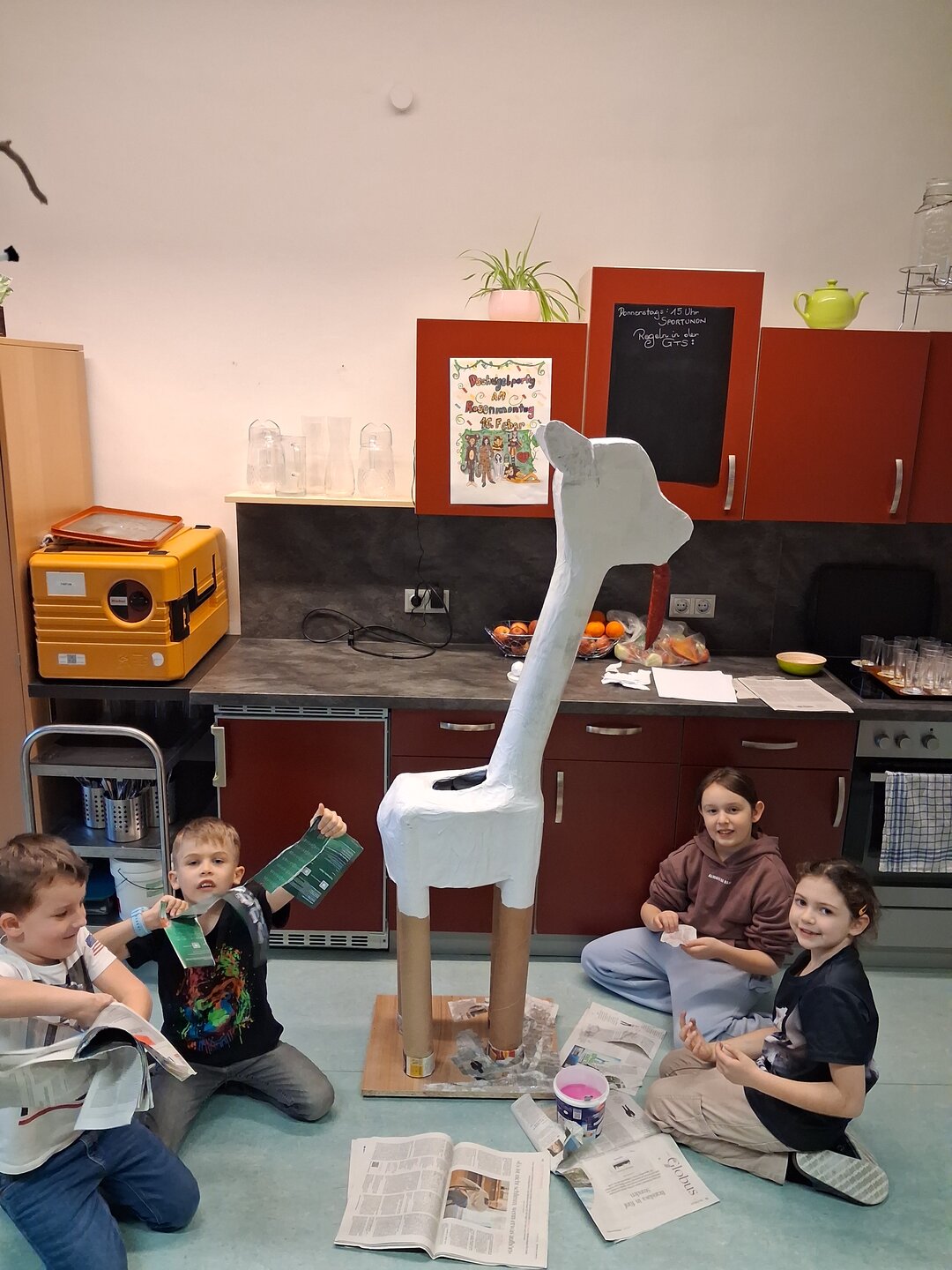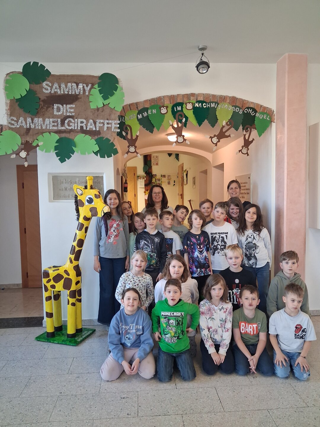 In der GTS hat ein ganz besonderes Projekt Einzug gehalten: Sammy, die Sammelgiraffe steht gut sichtbar vor dem Eingang und lädt alle Kinder ein, aktiv zum Umweltschutz beizutragen.