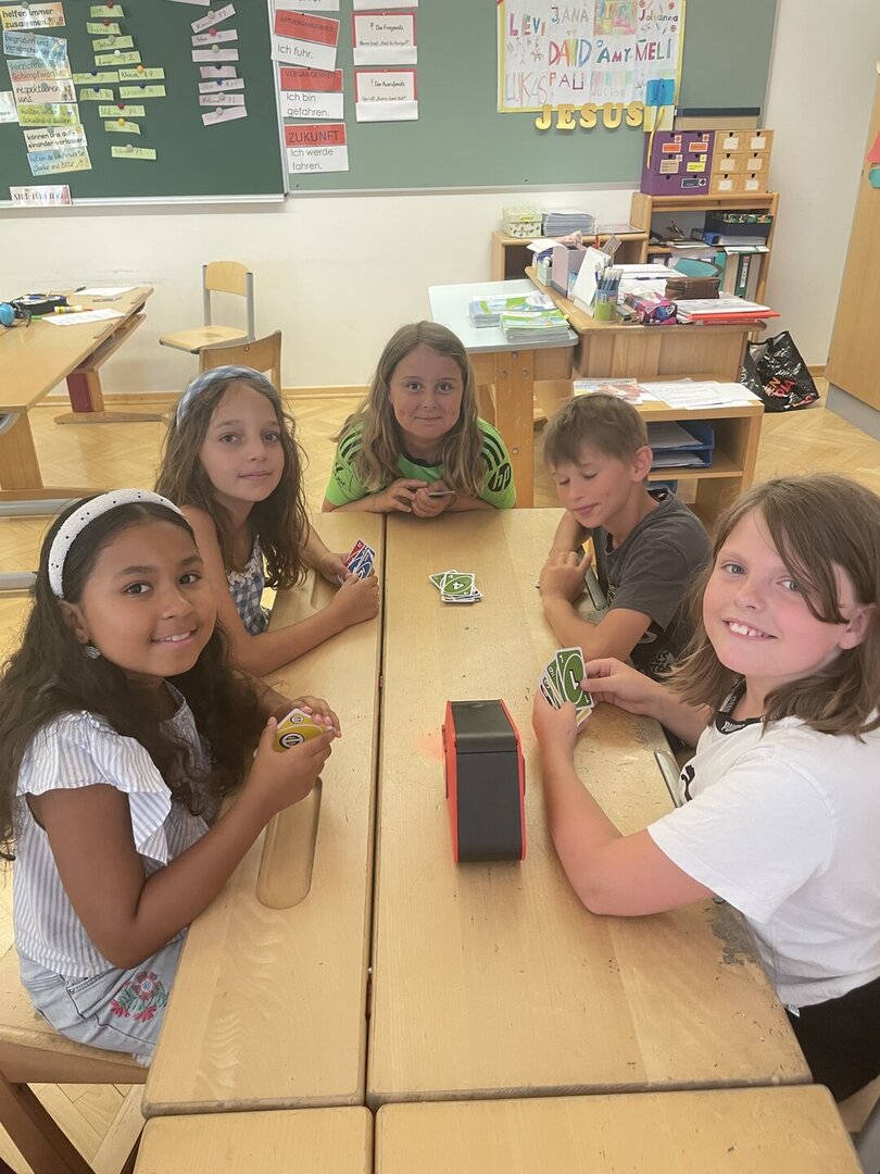 Während die anderen unterwegs waren, erlebten die Kinder in der Schule einen fröhlichen Spieletag – mit viel Abwechslung, Bewegung und gemeinsamen Aktivitäten.