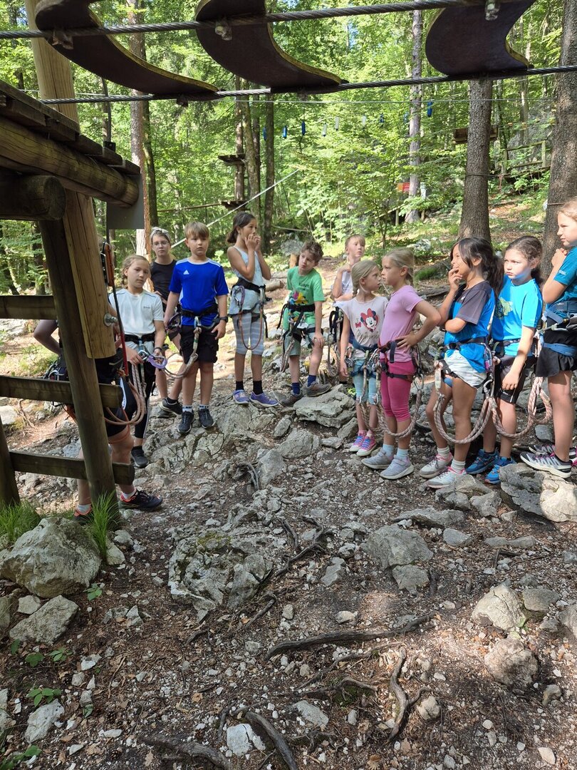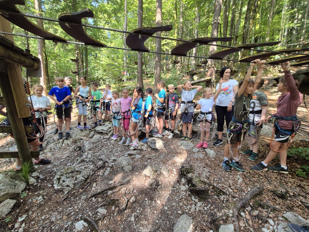 Als besonderes Dankeschön für die Teilnahme am zweisprachigen Unterricht unternahmen die teilnehmenden Kinder einen gemeinsamen Ausflug in den Waldseilpark Tscheppaschlucht. Dort erwartete sie ein spannender Tag voller Bewegung, Herausforderung und Naturerlebnis.