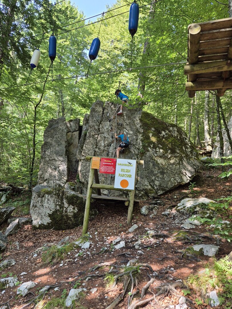 Mit Gurten gesichert und gut betreut wagten sich die Kinder auf verschiedene Kletterparcours, balancierten über Seile, meisterten Hindernisse und wuchsen über sich hinaus. Dabei standen Mut, Teamarbeit und gegenseitige Unterstützung im Mittelpunkt.