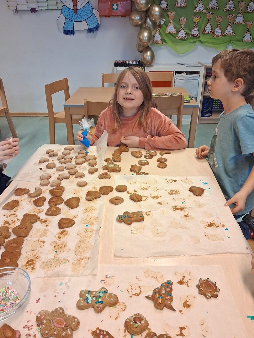 Mit viel Begeisterung wurden Teige geknetet, Kekse ausgestochen, verziert und natürlich auch verkostet. Der Duft von Vanille, Zimt und frisch gebackenen Plätzchen erfüllte die Räume und sorgte für echte Weihnachtsstimmung.