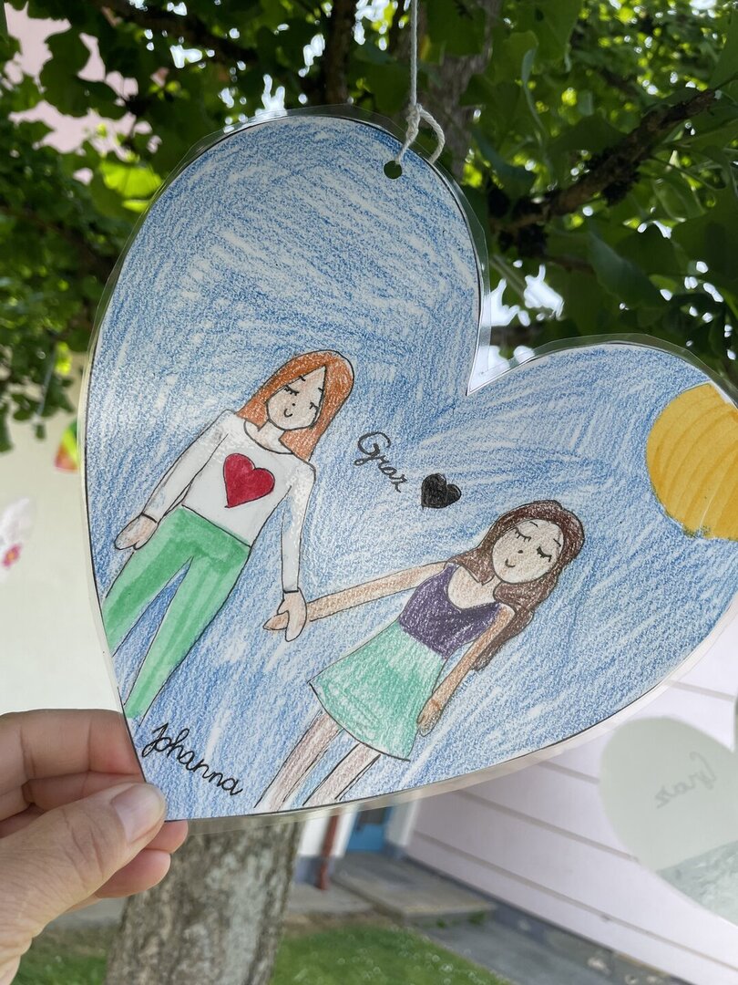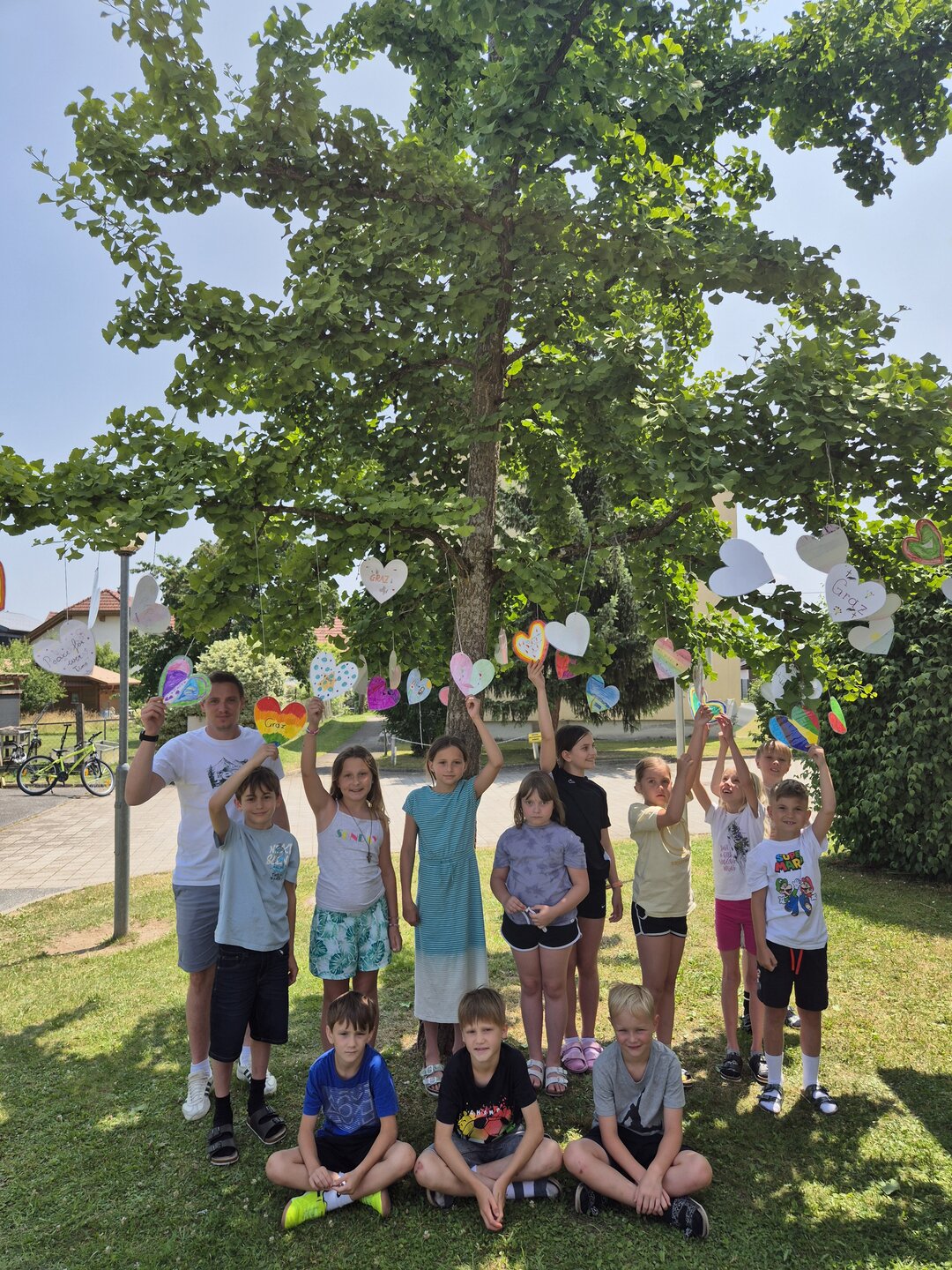 Srčke smo obesili na drevo pred šolo, kjer so vidni vsem – kot tiha gesta sočutja in miroljubno znamenje proti nasilju.